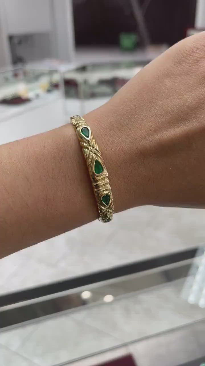 2.0cts 14K Colombian Emerald-Pear Cut Bangle Bracelet