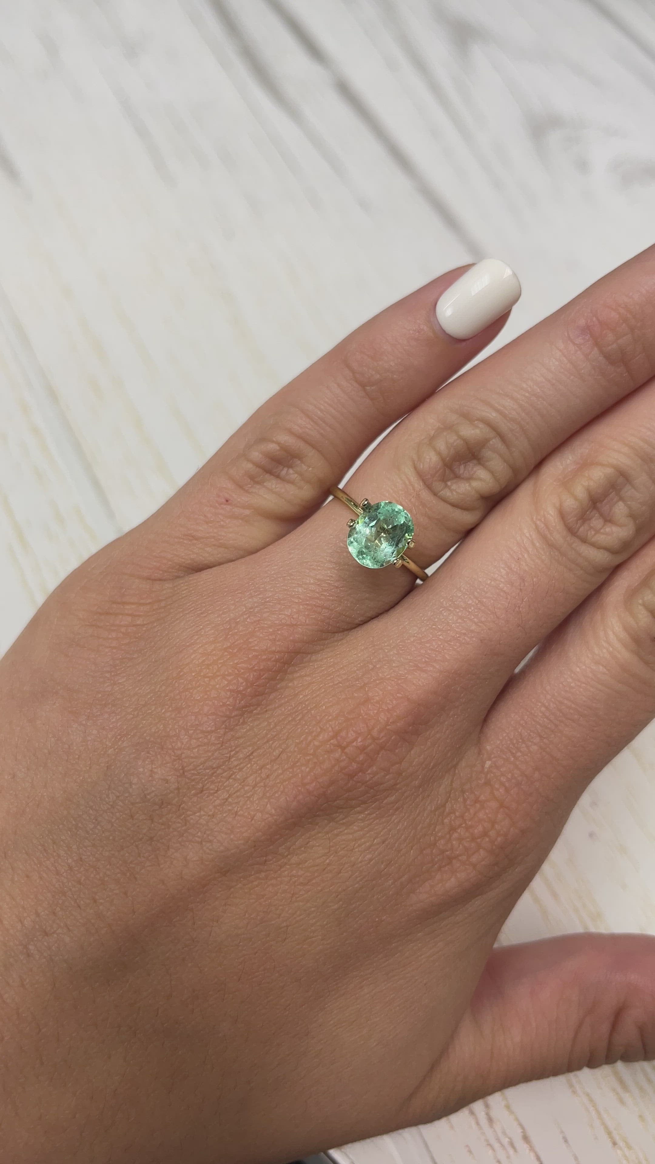 2.10 Carat 9x7 Freckled Sea Foam Green Natural Loose Colombian Emerald-Oval Cut