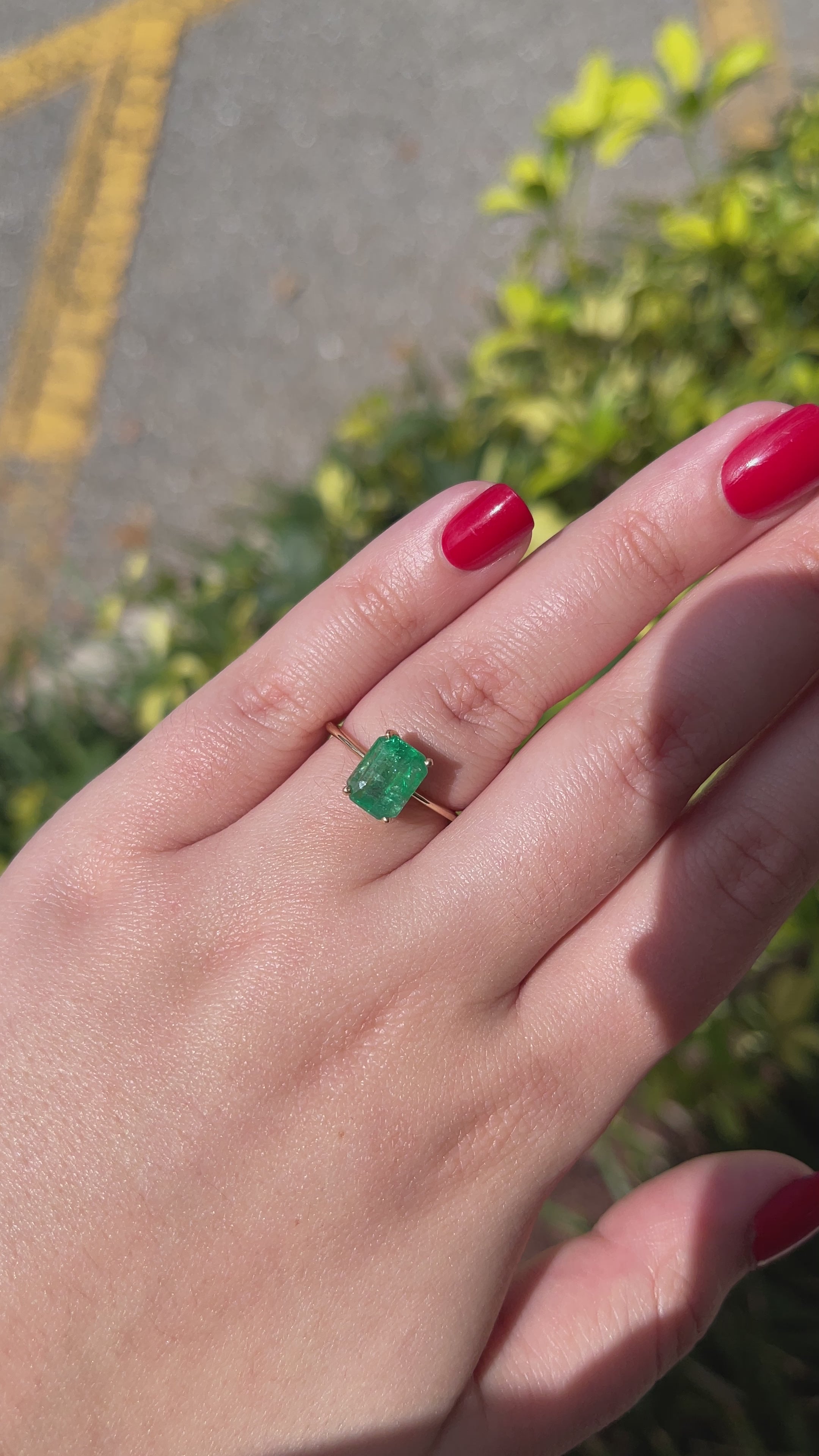 2.10cts 14K Gold 4 Prong Natural Real Emerald Solitaire Right Hand Ring
