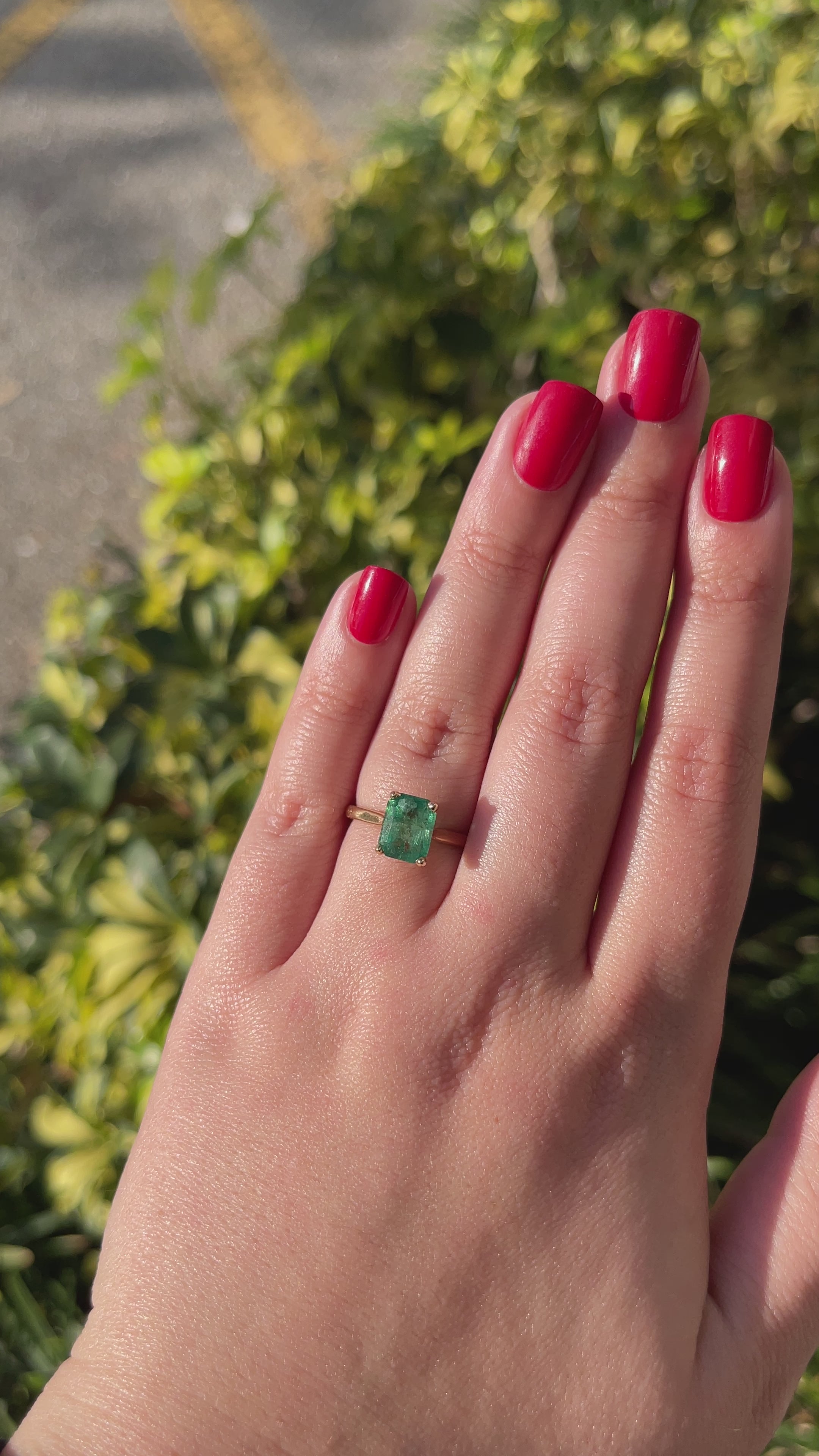 2.25ct 14K Gold Vivid Medium Dark Green Emerald Cut 4 Prong Solitaire Right Hand Ring