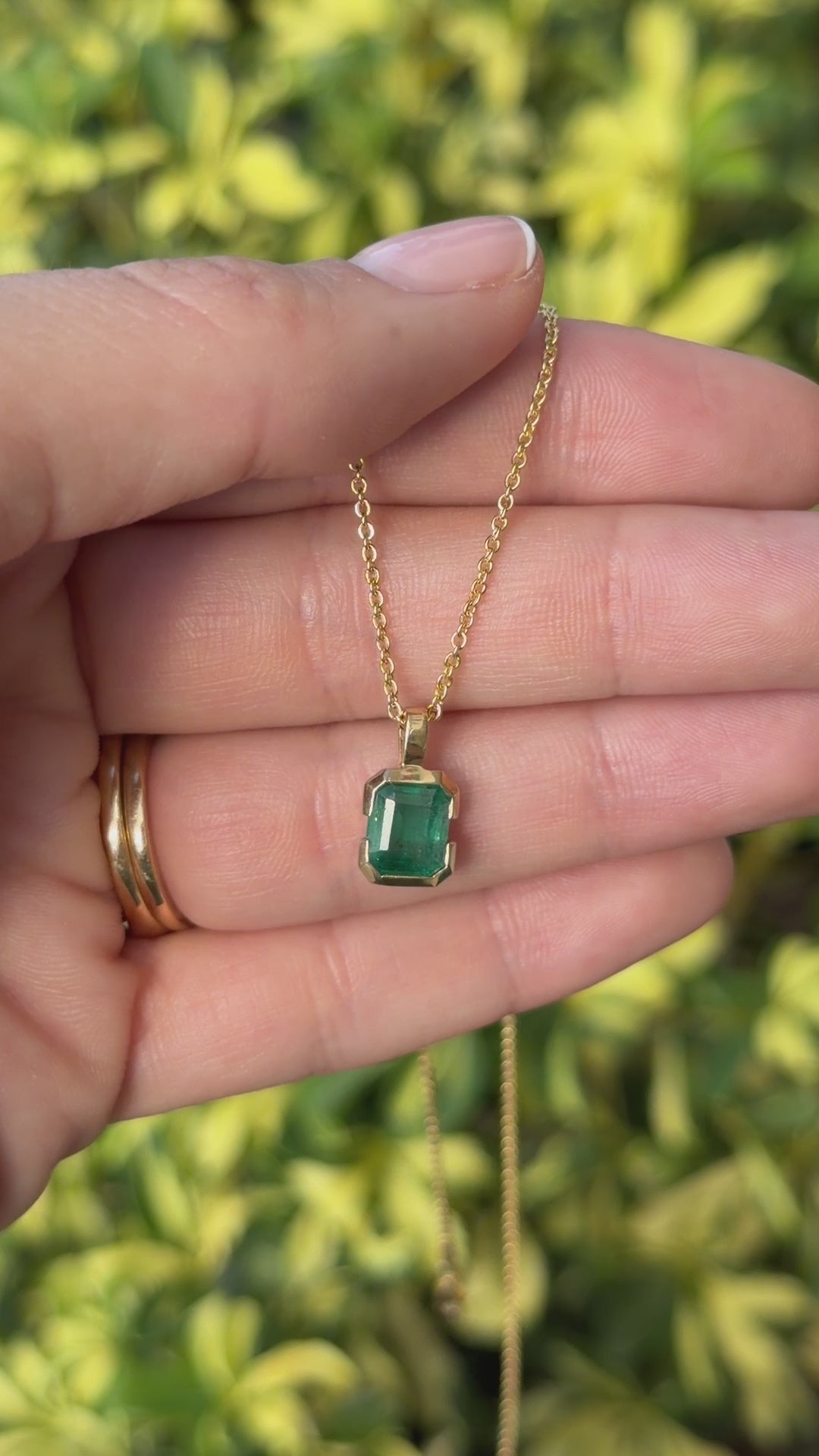 2.28 Carat Semi Bezel Emerald Solitaire Necklace 14K- Emerald Touches Skin