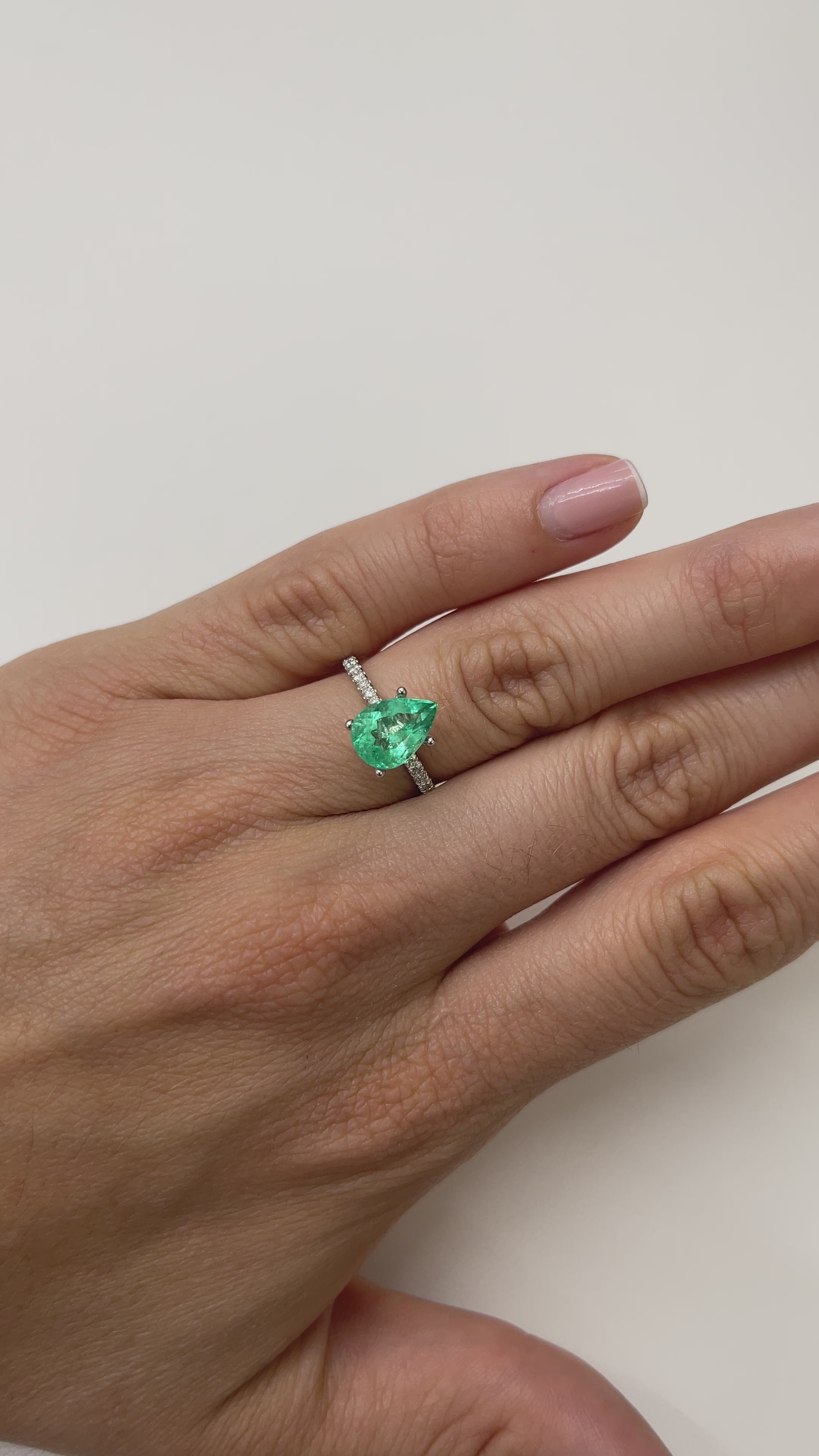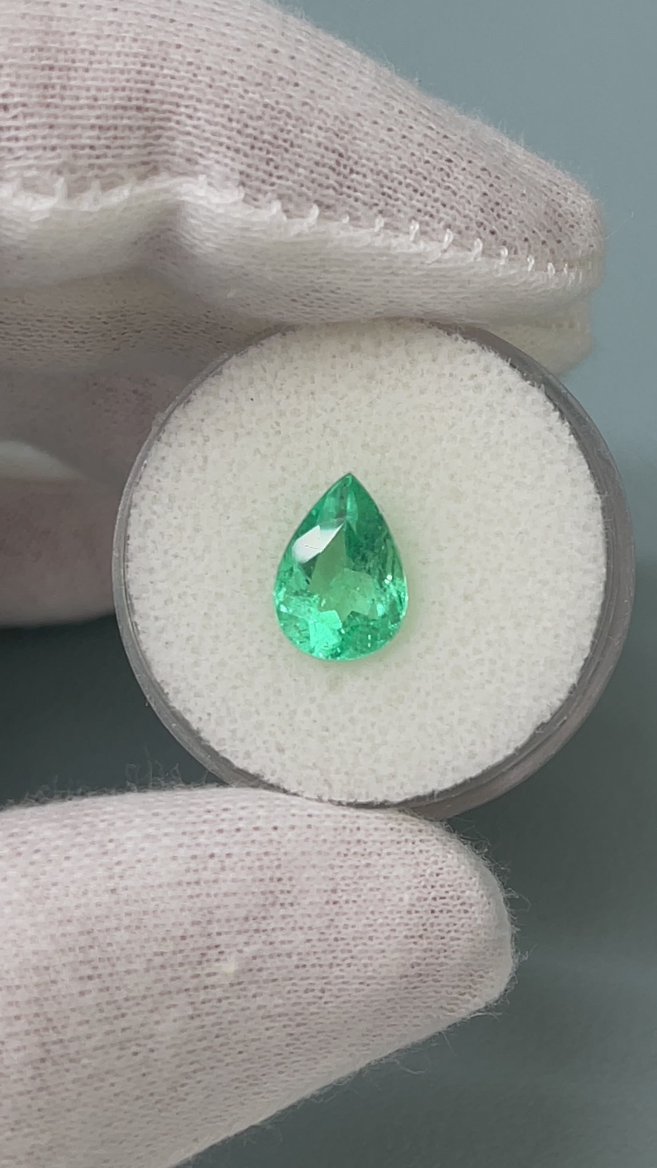 2.41 carat 10.5x7.5 Pastel Bluish Green Natural Loose Colombian Emerald-Pear Cut