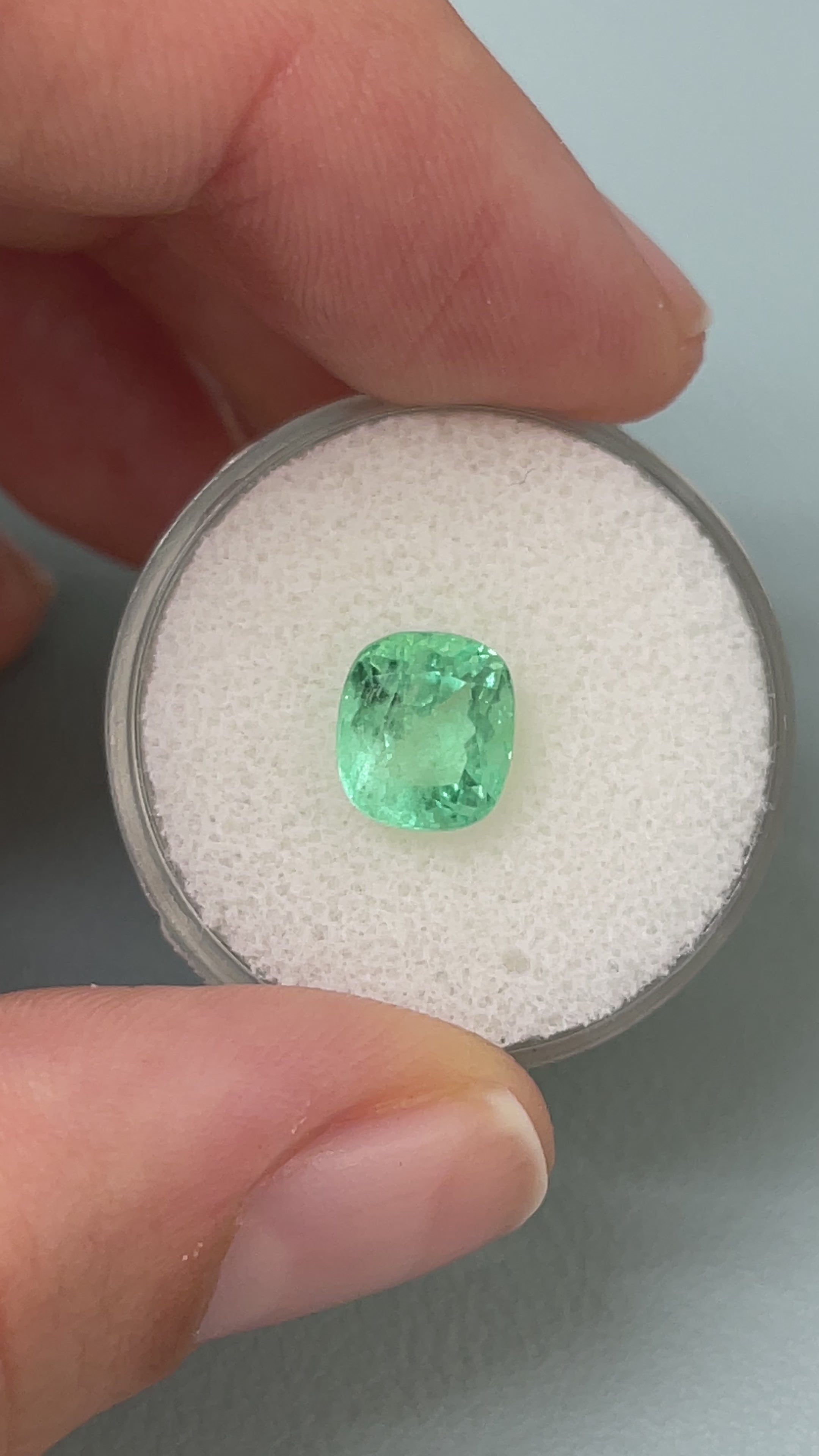 2.55 Carat 8.5x7.5 Pastel Green Natural Loose Colombian Emerald-Cushion Cut