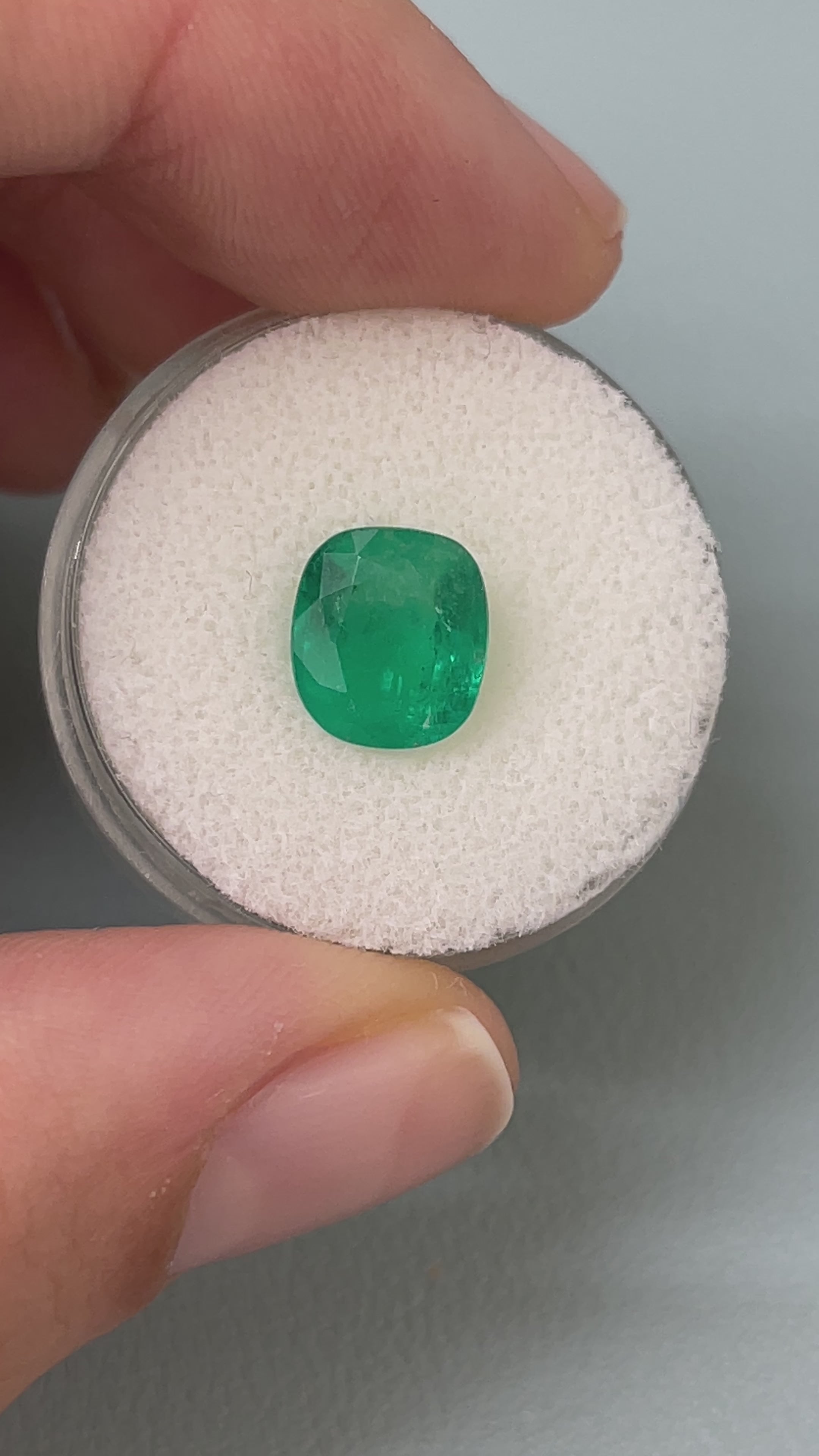 2.55 Carat 9.3x8.2 Deep Green Natural Loose Colombian Emerald-Cushion Cut
