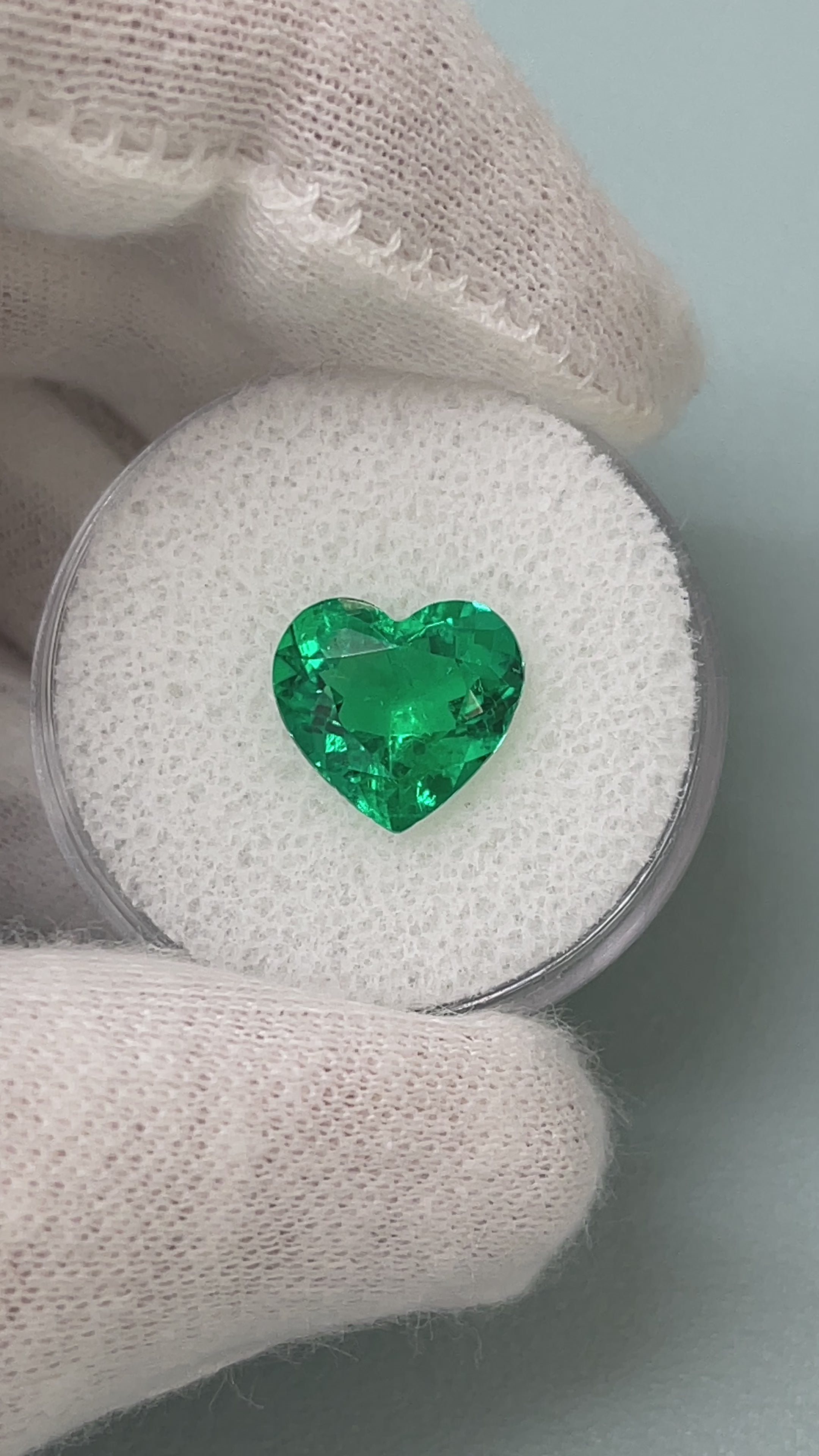 2.68 Carat 10x10.5 AAA+ Vivid Green Natural Loose Colombian Emerald-Heart Cut