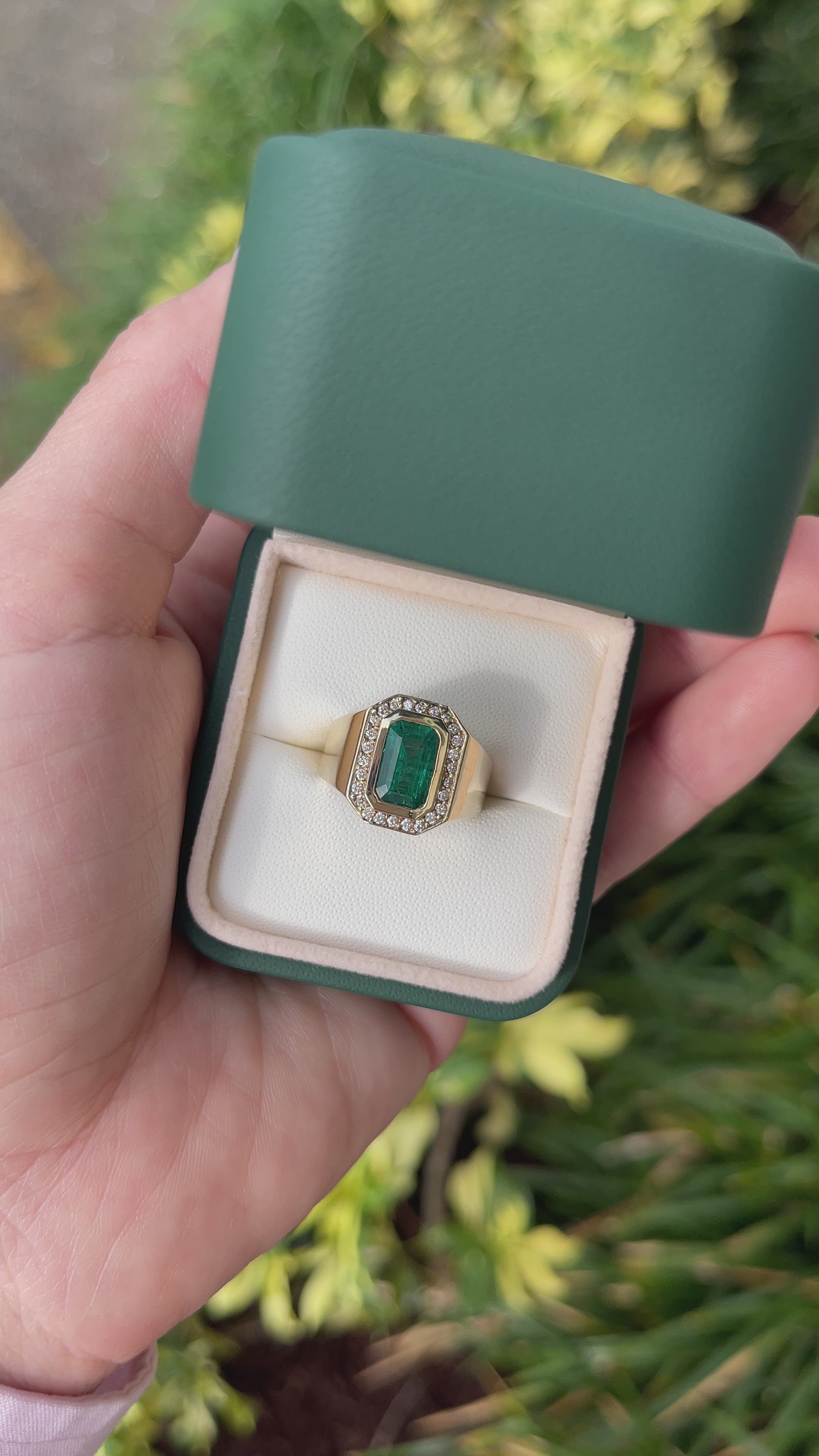 2.80tcw Natural Emerald & Diamond Men's Cocktail Ring 14K