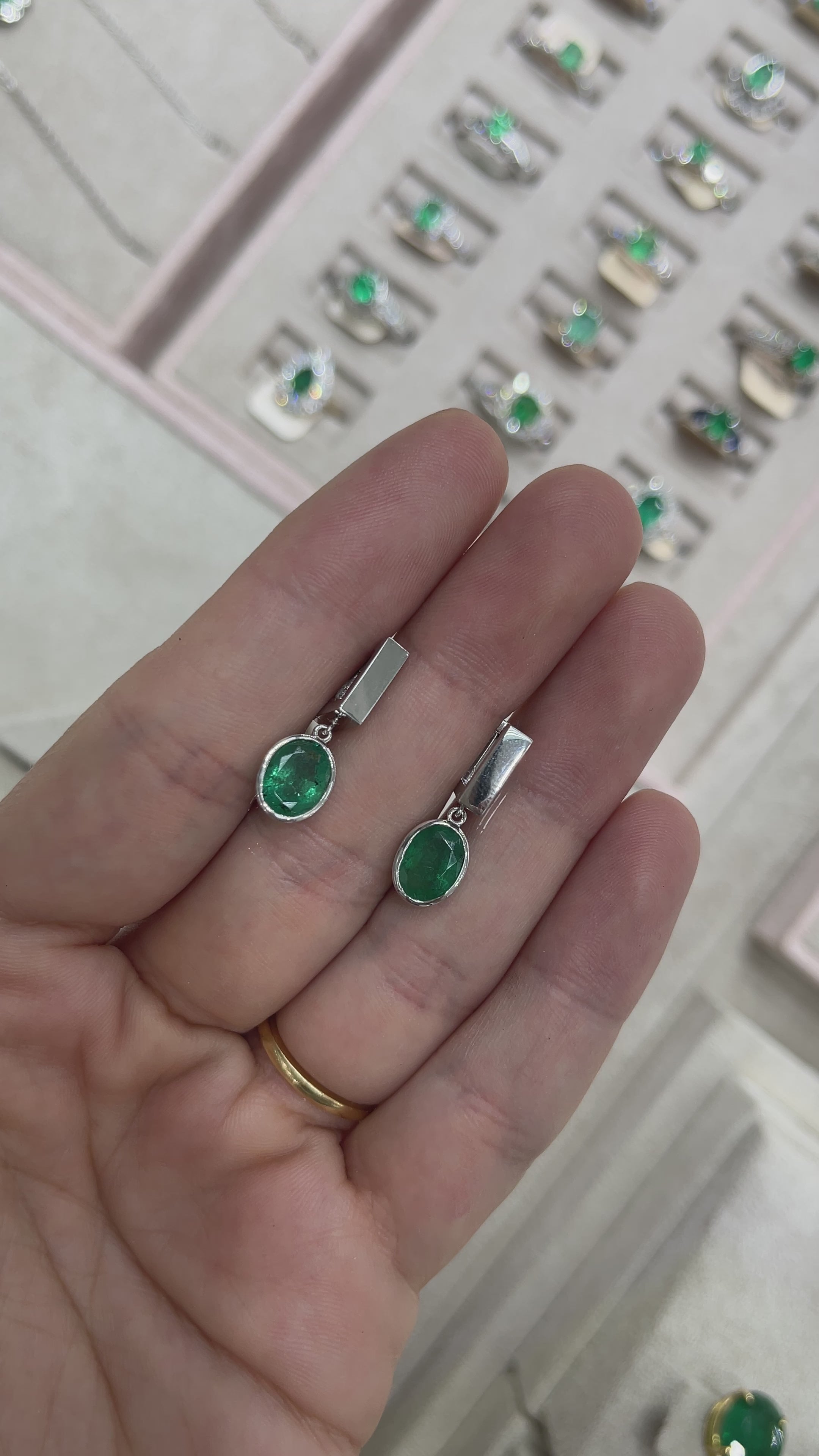 2.90tcw Bezel Set Oval Emerald Dangle Huggie Earrings 14K White Gold