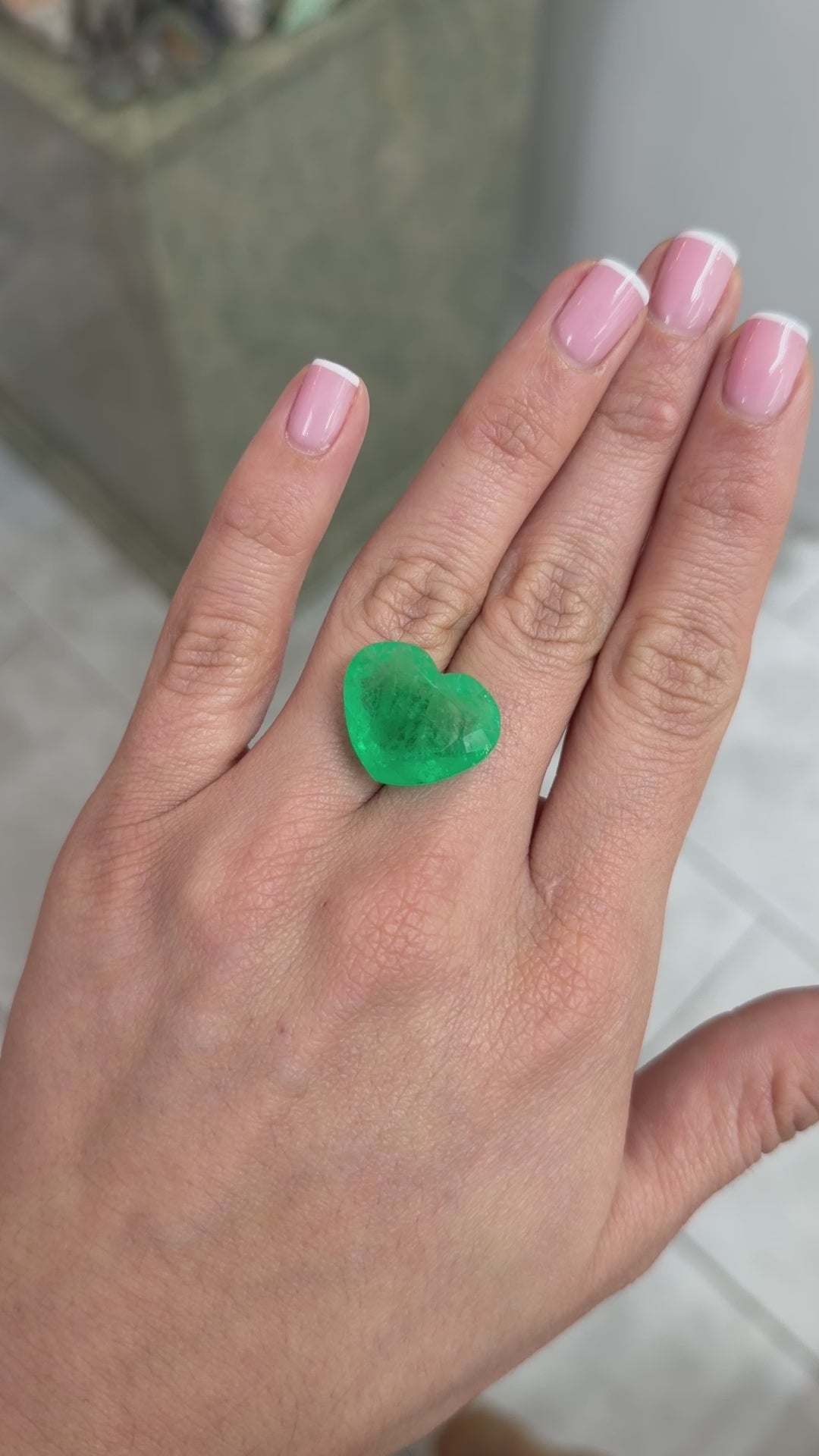 Large 23.97 Carat 18x22 Bright Green Natural Loose Colombian Emerald-Heart Cut