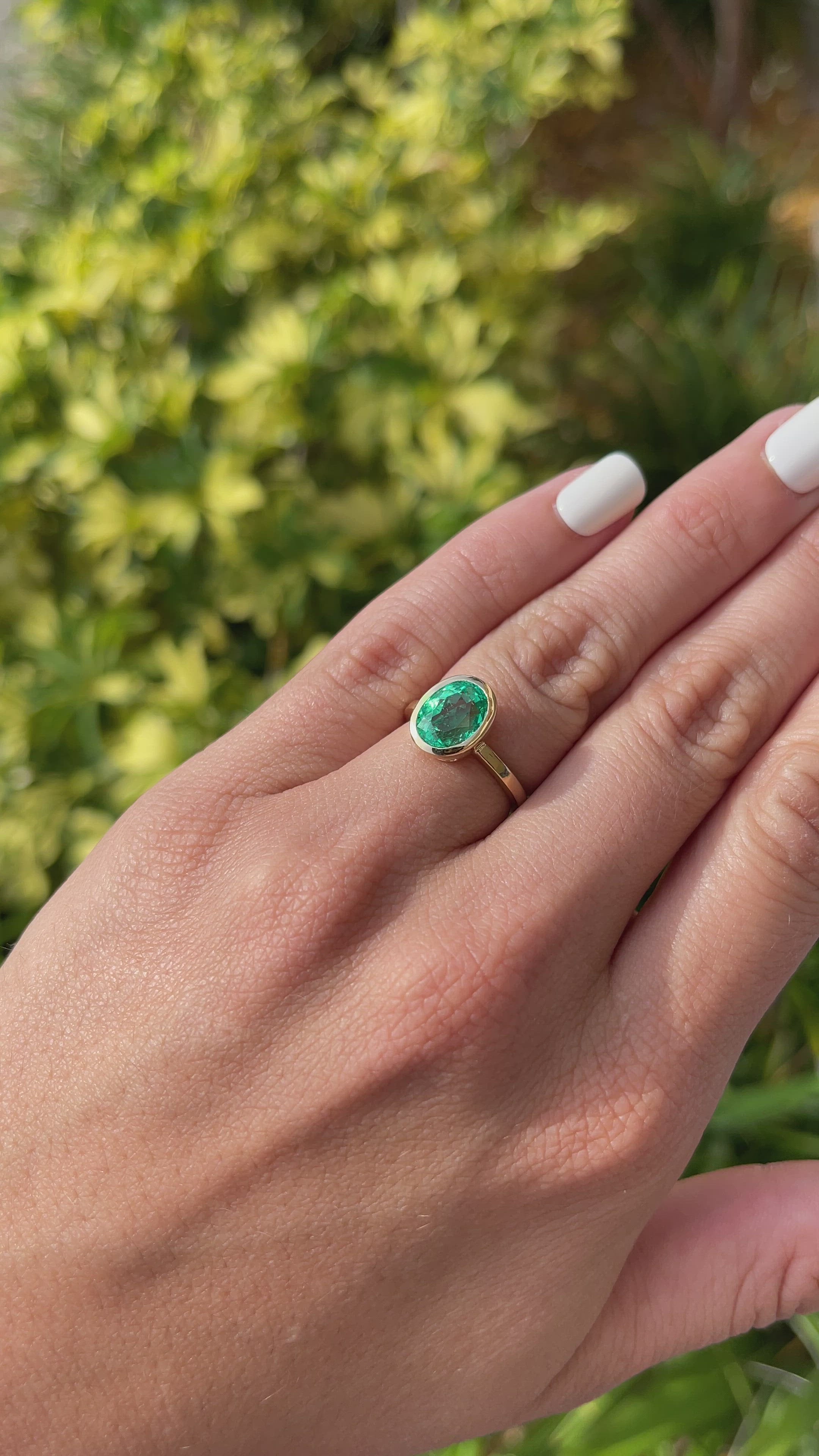 3.15cts 18K Bezel Set Oval Emerald Solitaire Engagement Ring