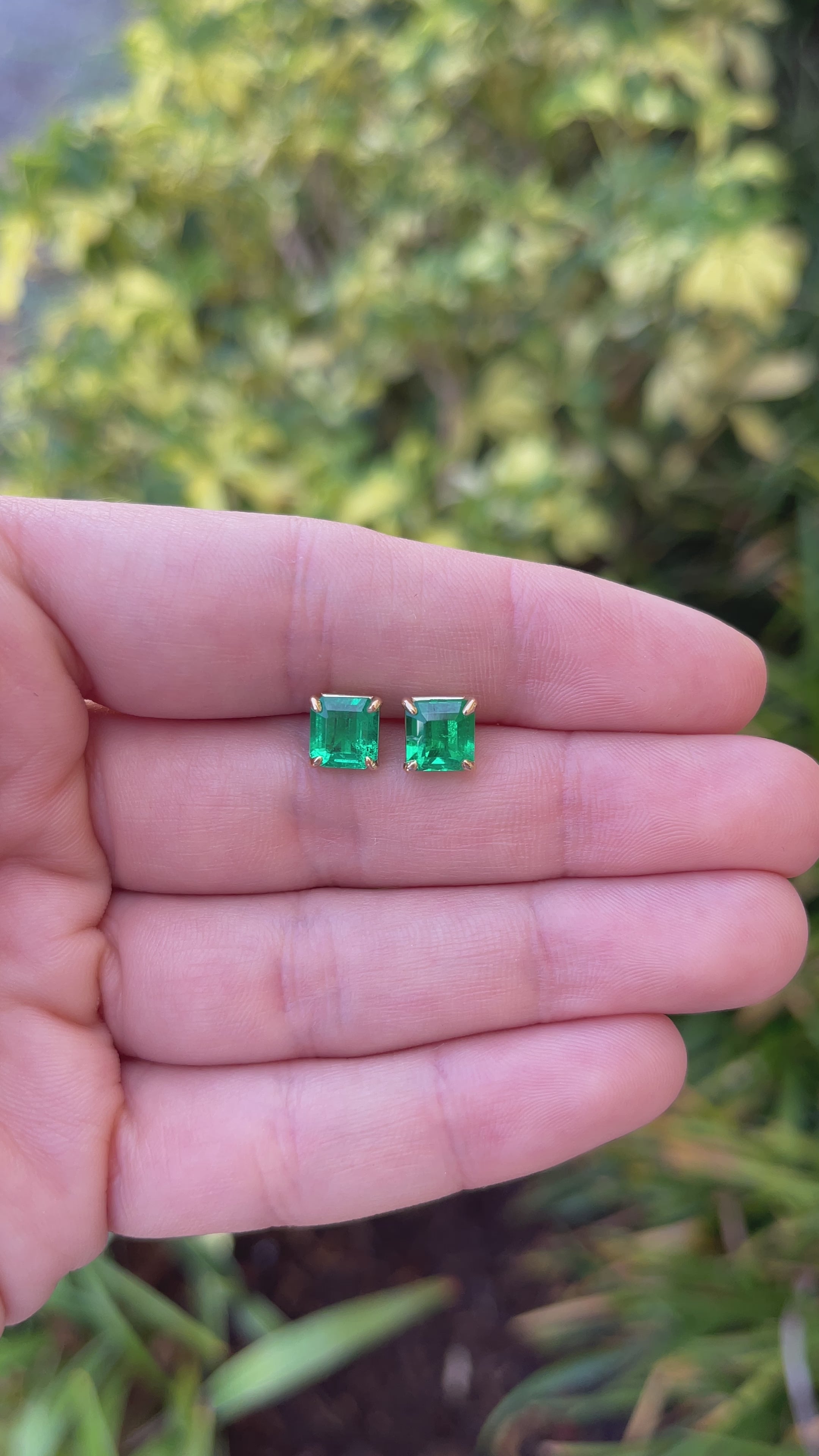3.18tcw 7x7 AAA+ Muzo Green Asscher Cut Colombian Emerald Studs 18K