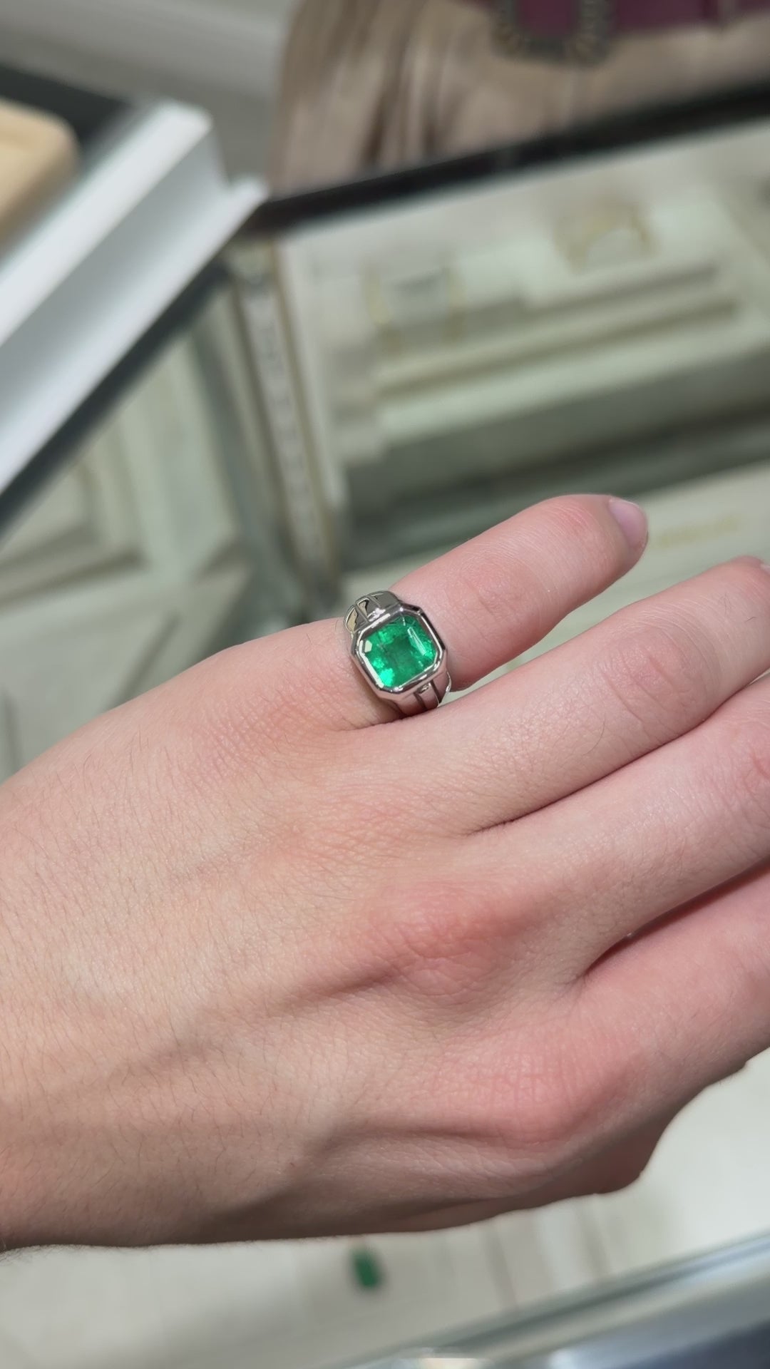 3.25ct Asscher Cut Colombian Emerald Solitaire Pinky Signet Ring 14K White Gold