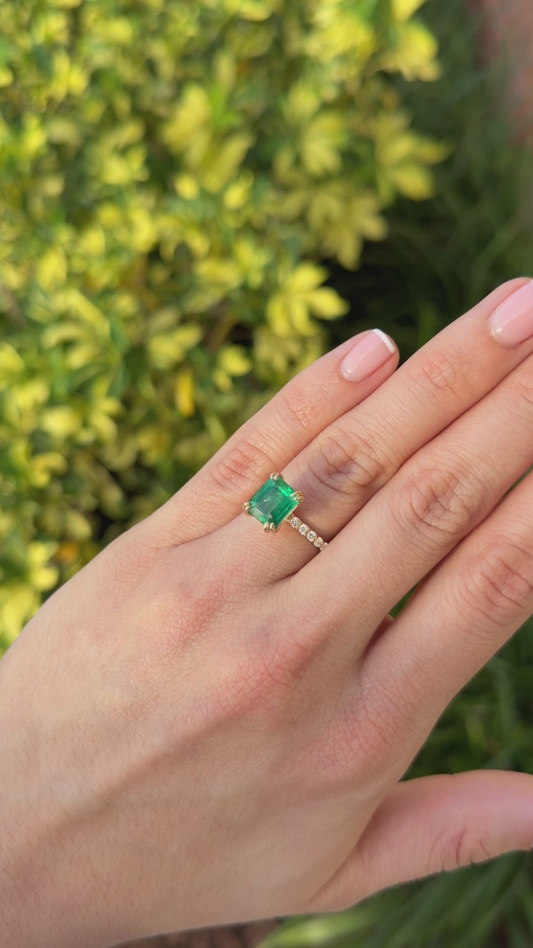 3.47 Double Prong Emerald Solitaire & Diamond Accent Engagement Ring 14K