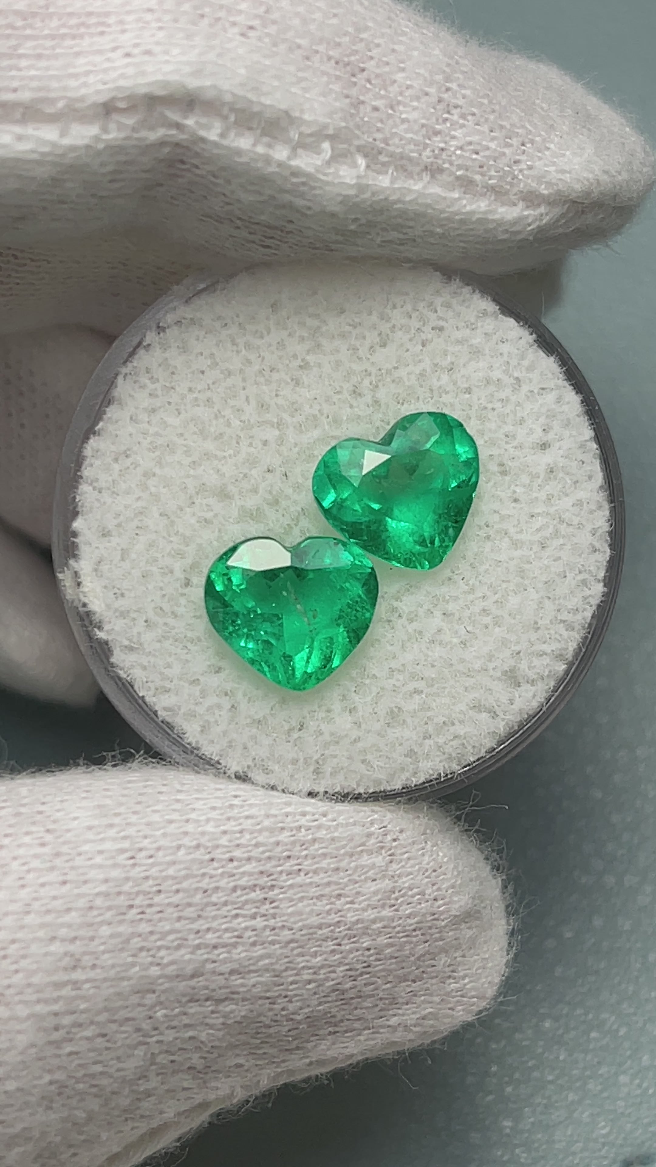 3.48tcw 8x9 Matching Emerald Hearts Vivid Muzo Green Natural Colombian Emeralds