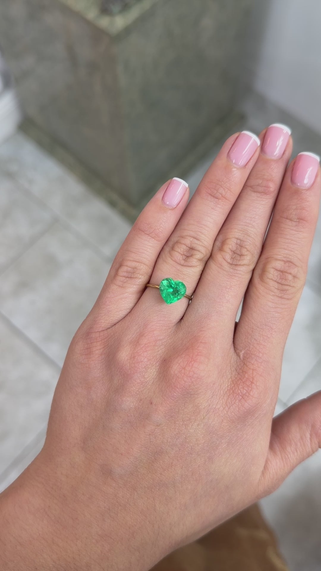 3.56 Carat 10.2x10.5 Bright Apple Spring Green Colombian Emerald Heart