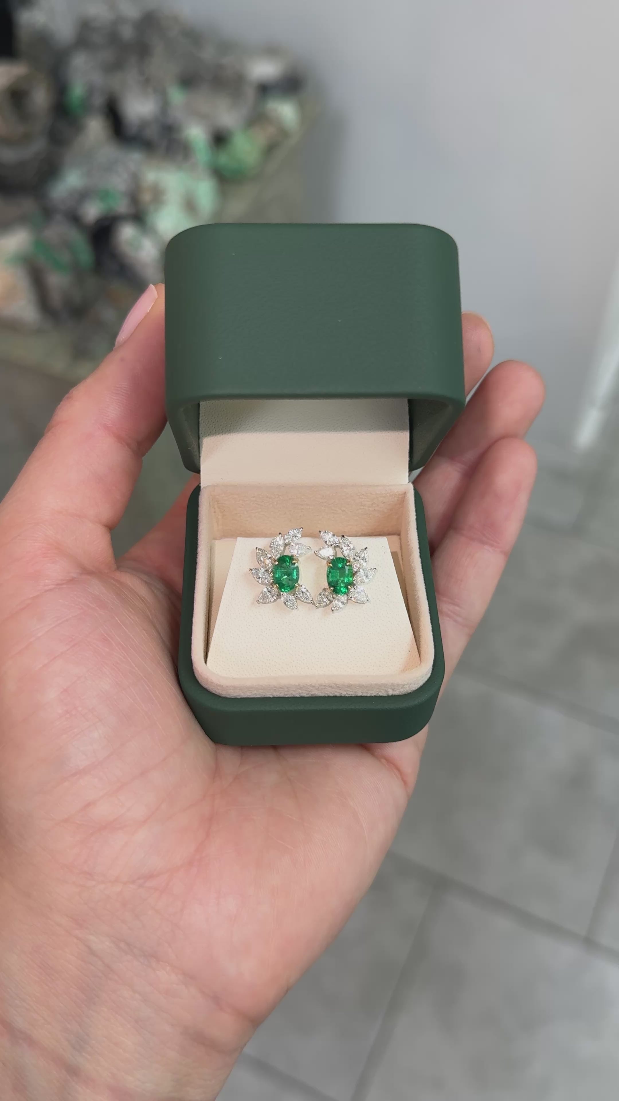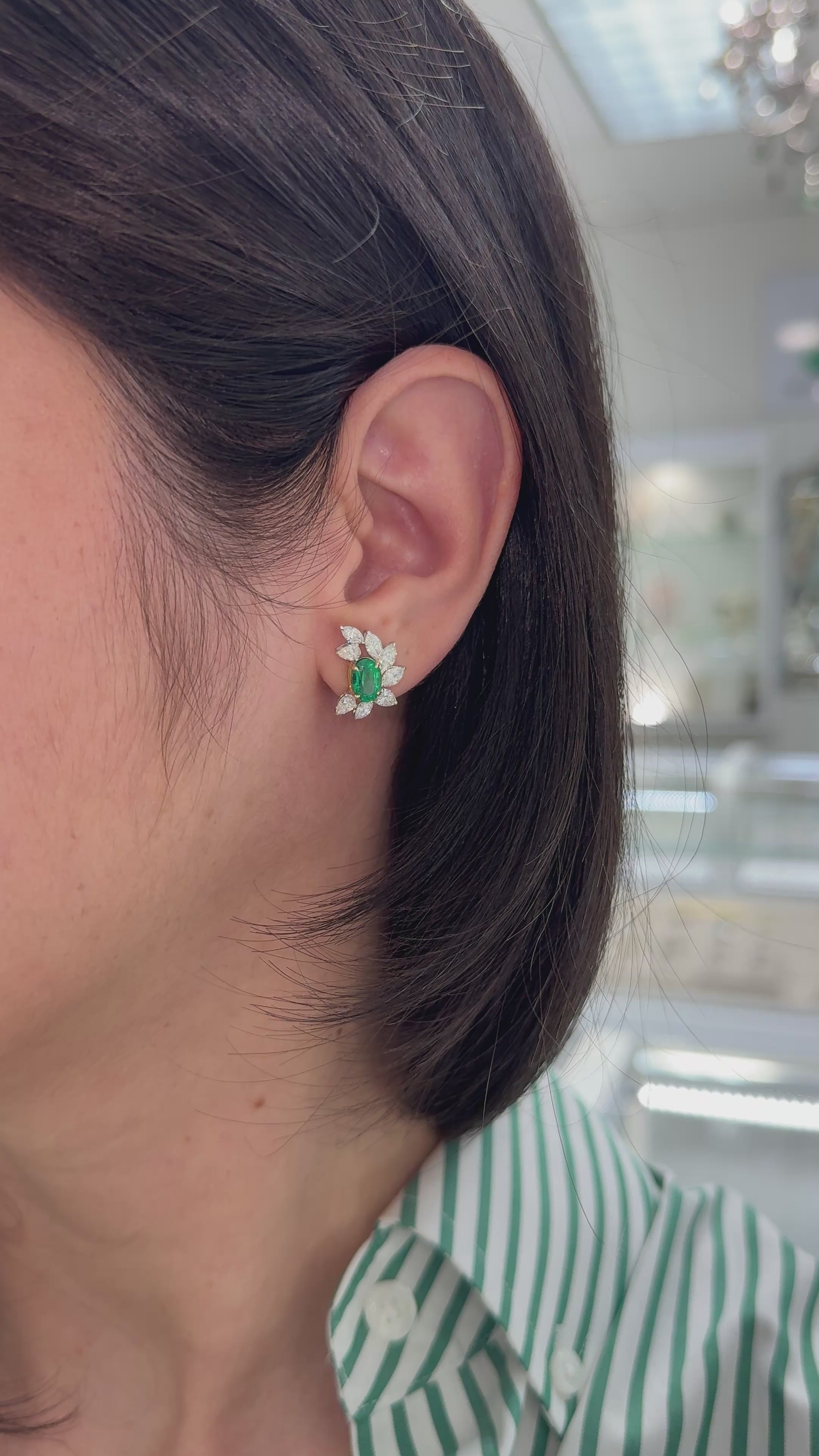 3.69tcw Oval Emerald & Diamond Marquise/Pear Statement Stud Earrings 18K