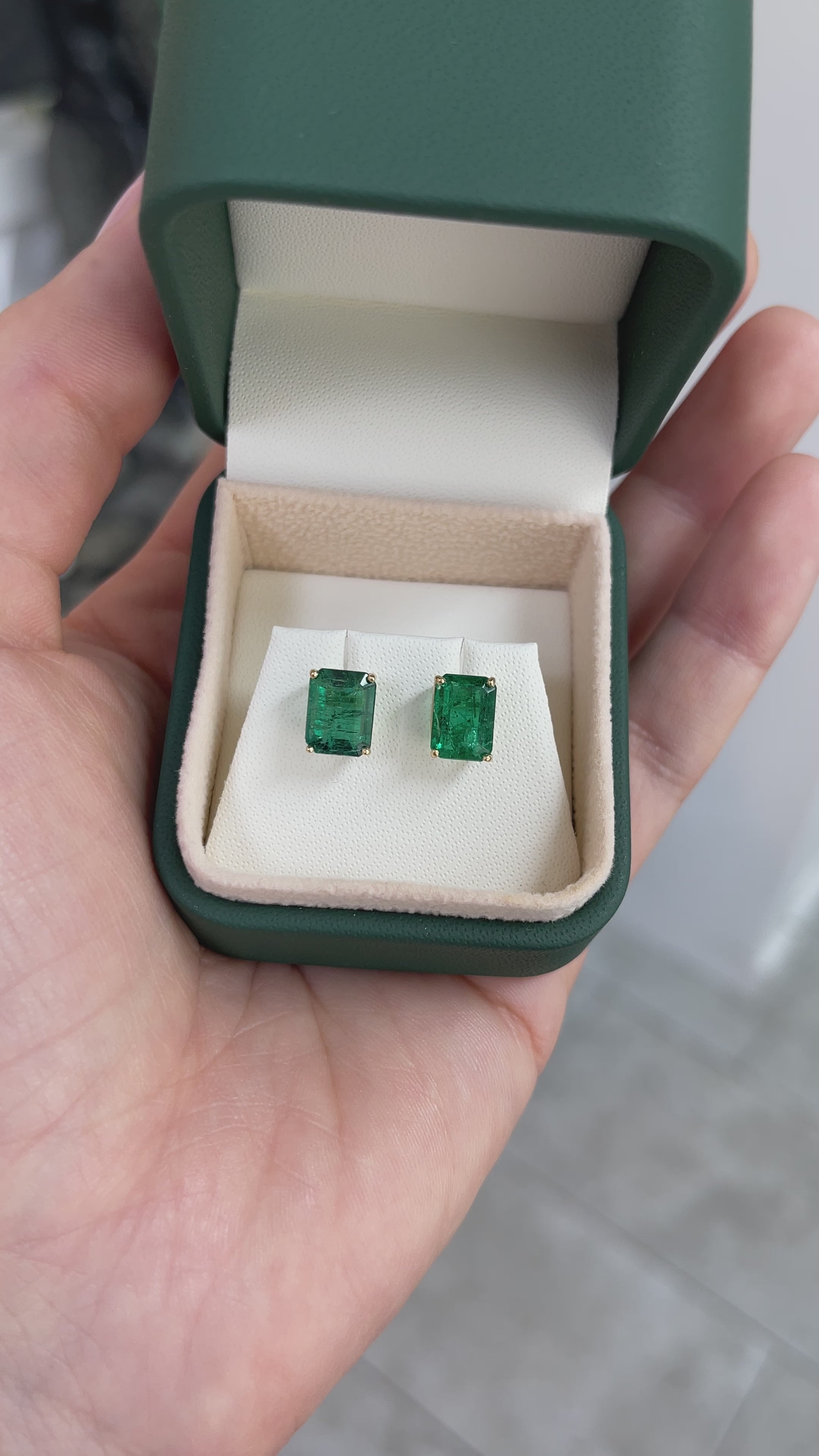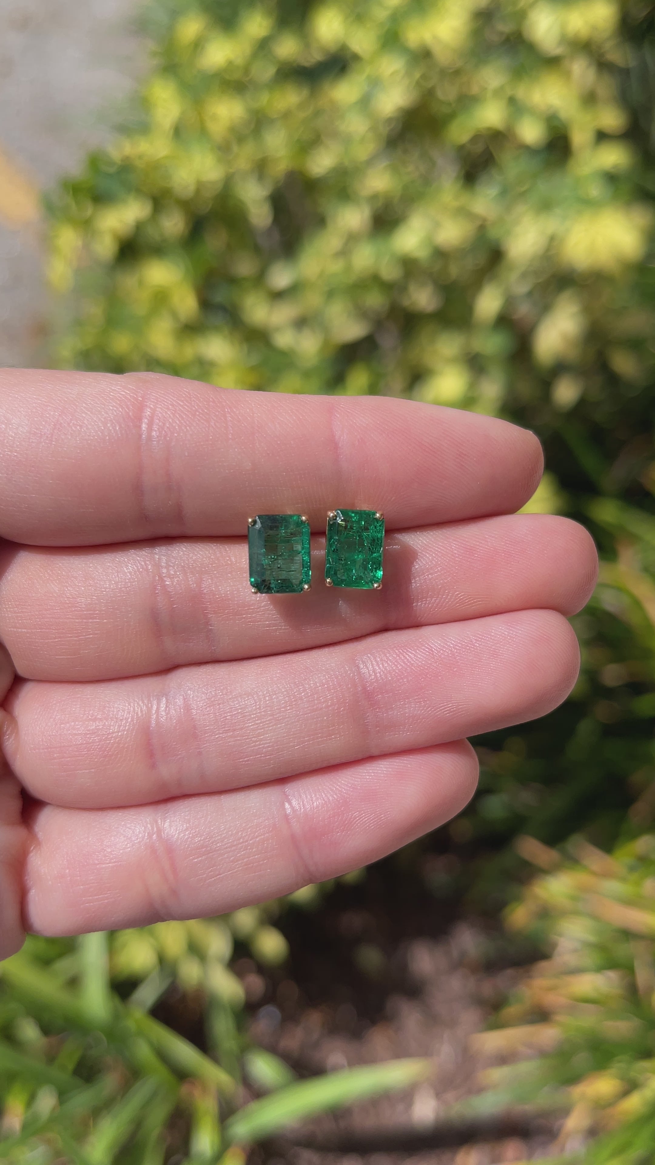 3.83tcw Zambian Emerald Emerald Cut Natural Stud Earrings 14K