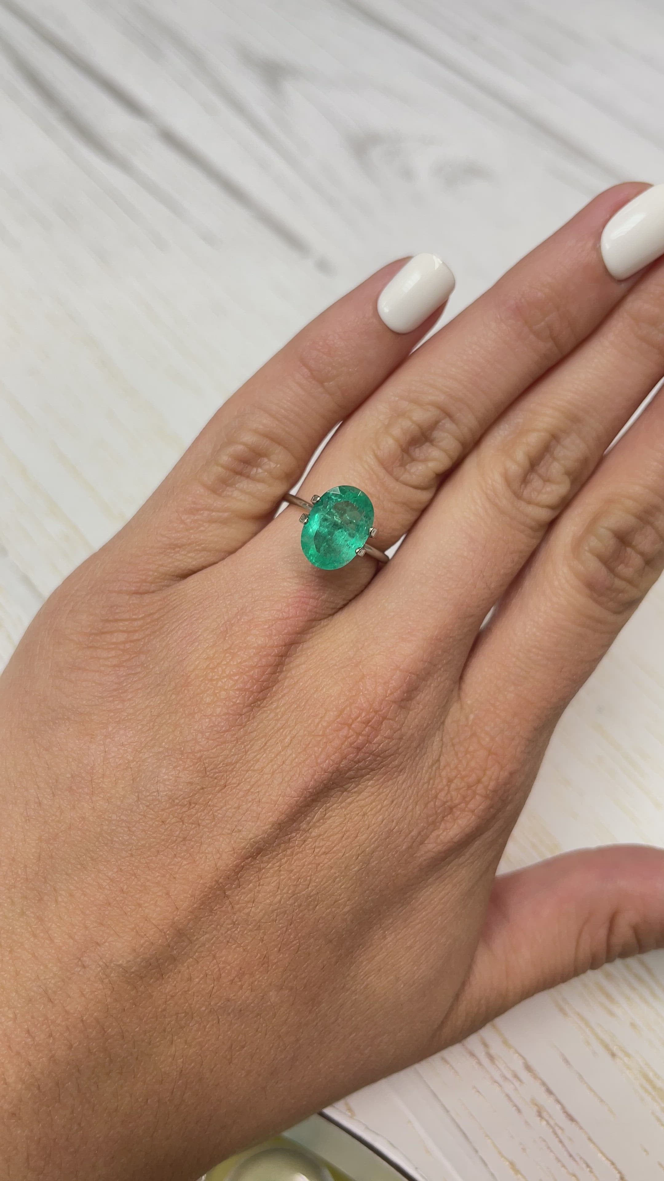 3.85 Carat Deep Bluish Green Natural Loose Colombian Emerald-Oval Cut