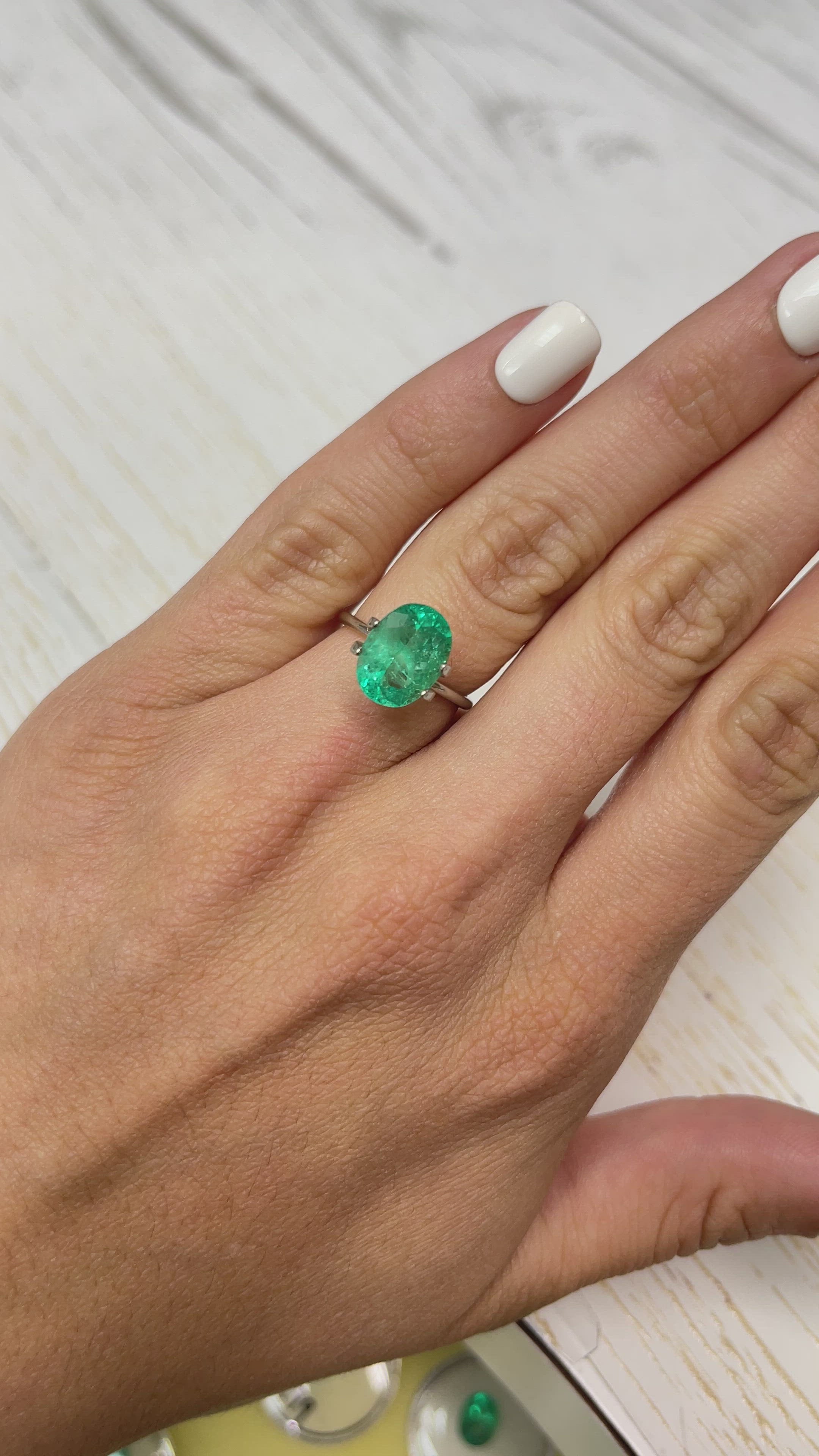 3.86 Carat Vibrant Spring Green Natural Loose Colombian Emerald-Oval Cut