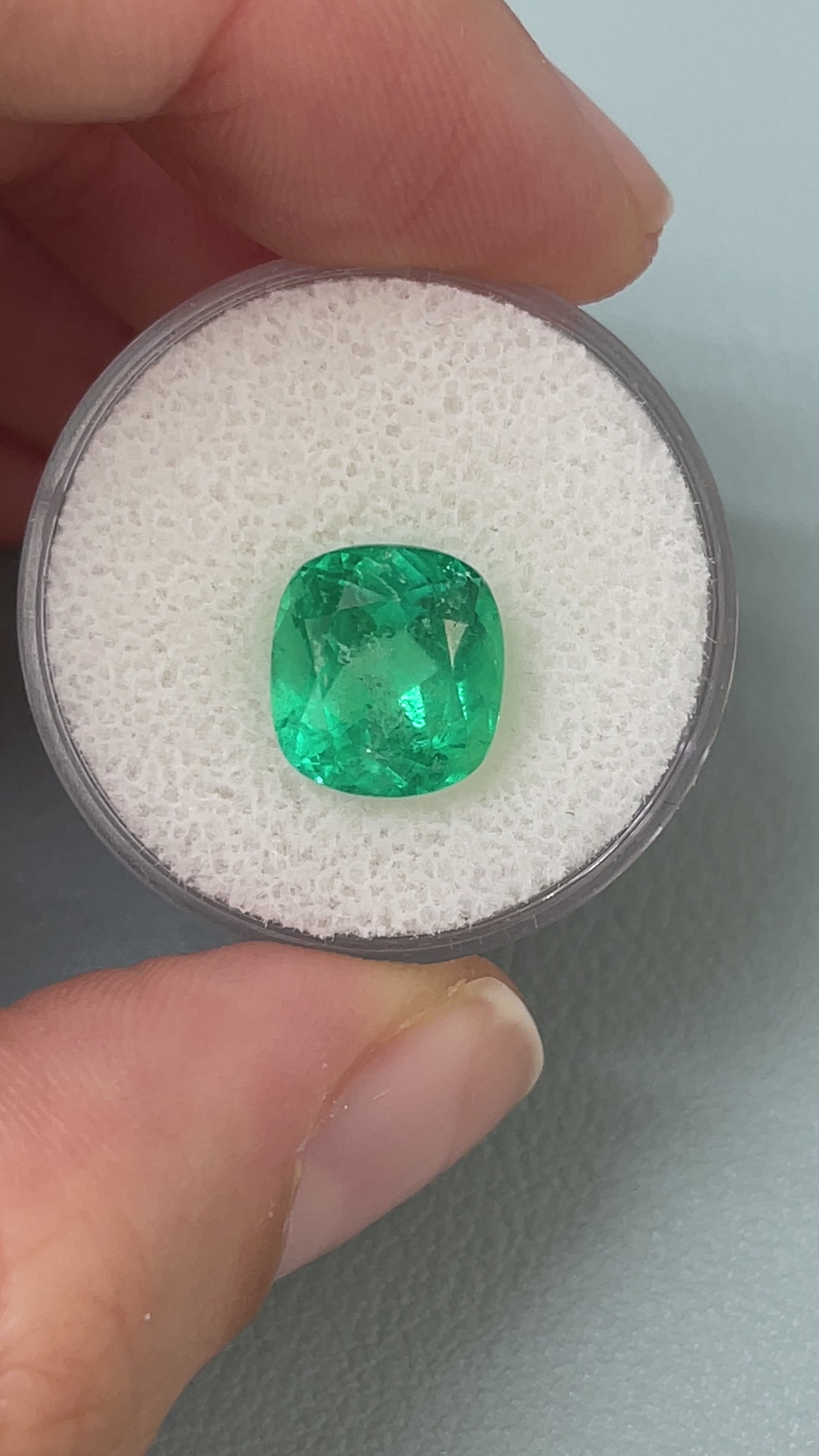 3.99 Carat 10.3 x 9.4 Earthy Bluish Natural Loose Colombian Emerald-Cushion Cut
