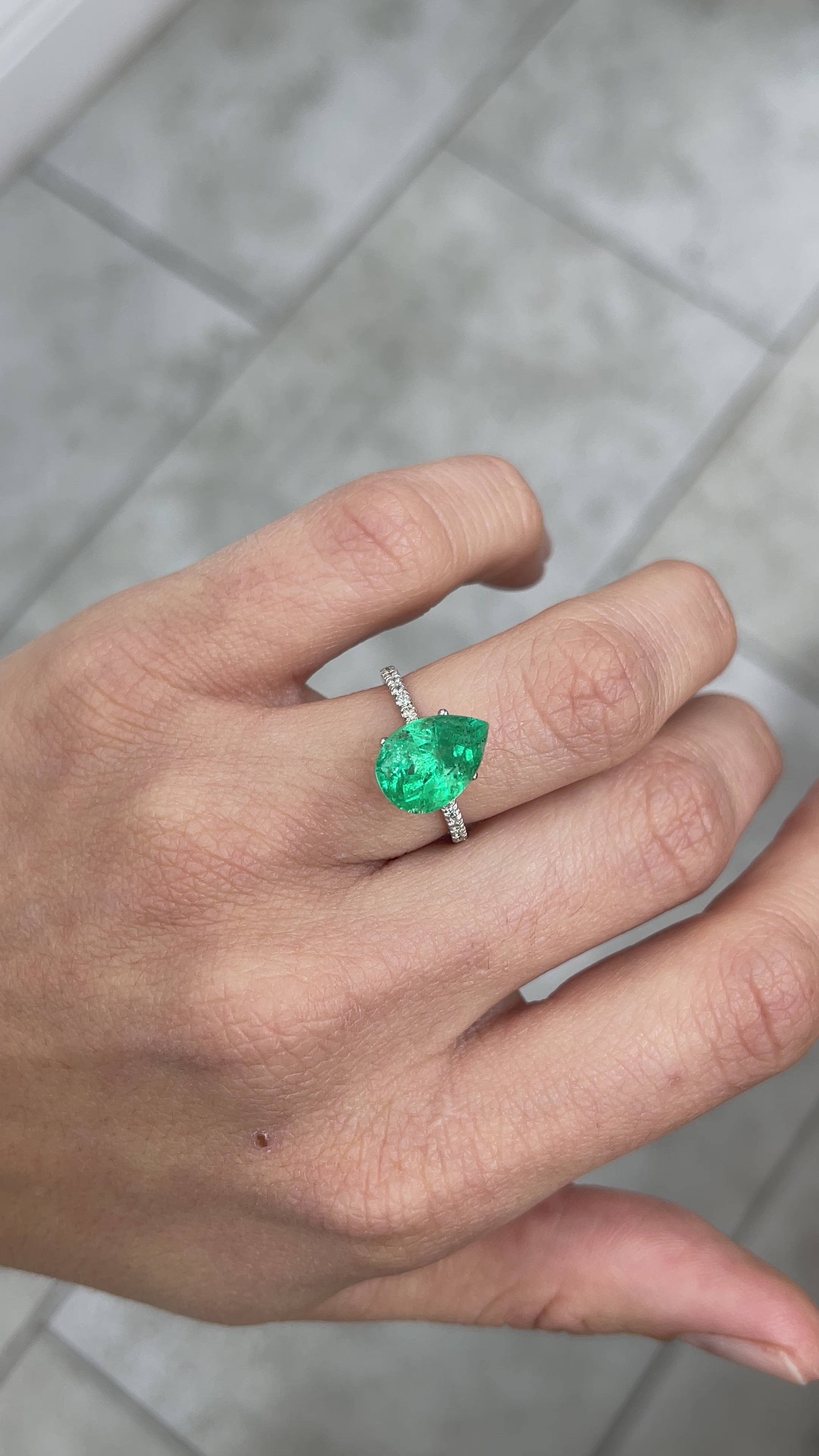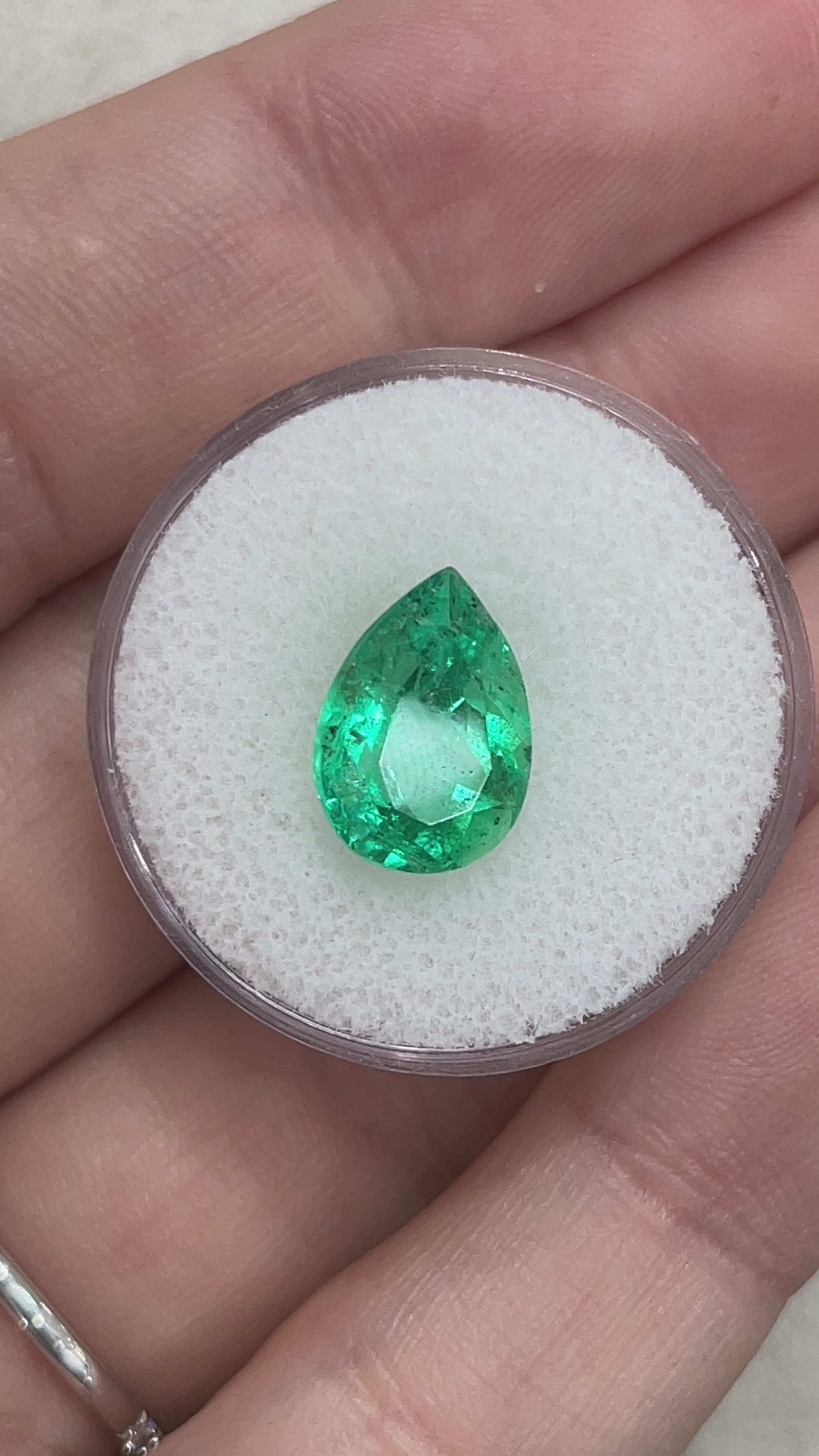4.09 Carat 12x9 Freckled Bluish Green Pear Loose Colombian Emerald