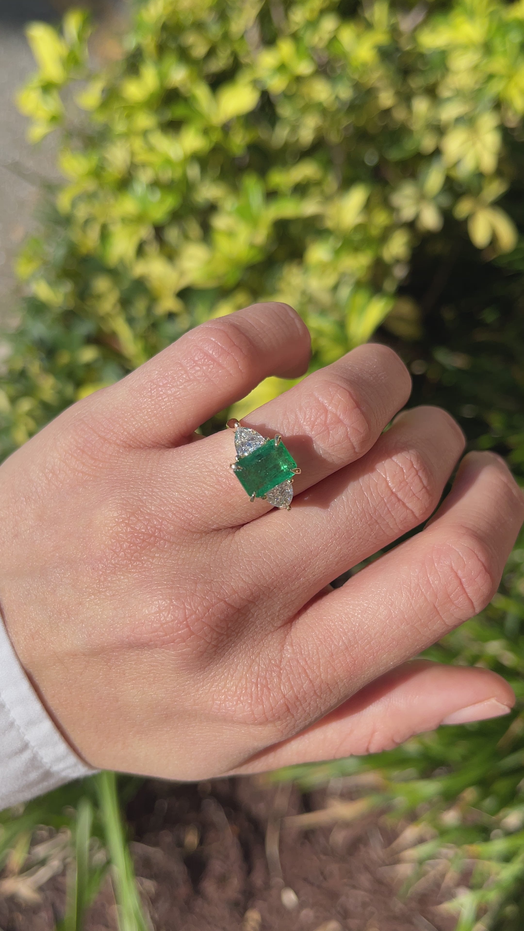 4.11tcw Natural Emerald & Lab Diamond Trillion Three Stone Ring 14K