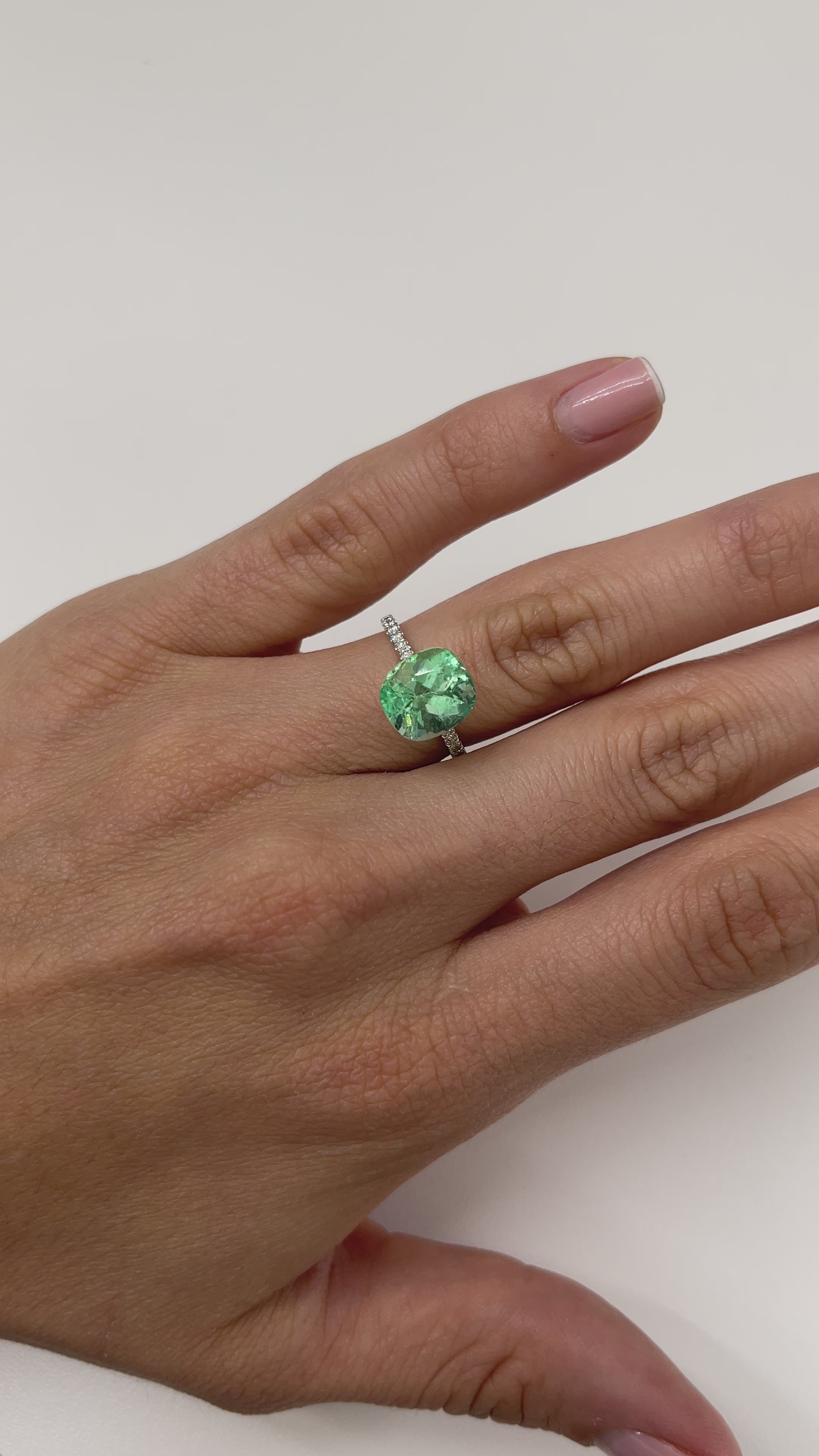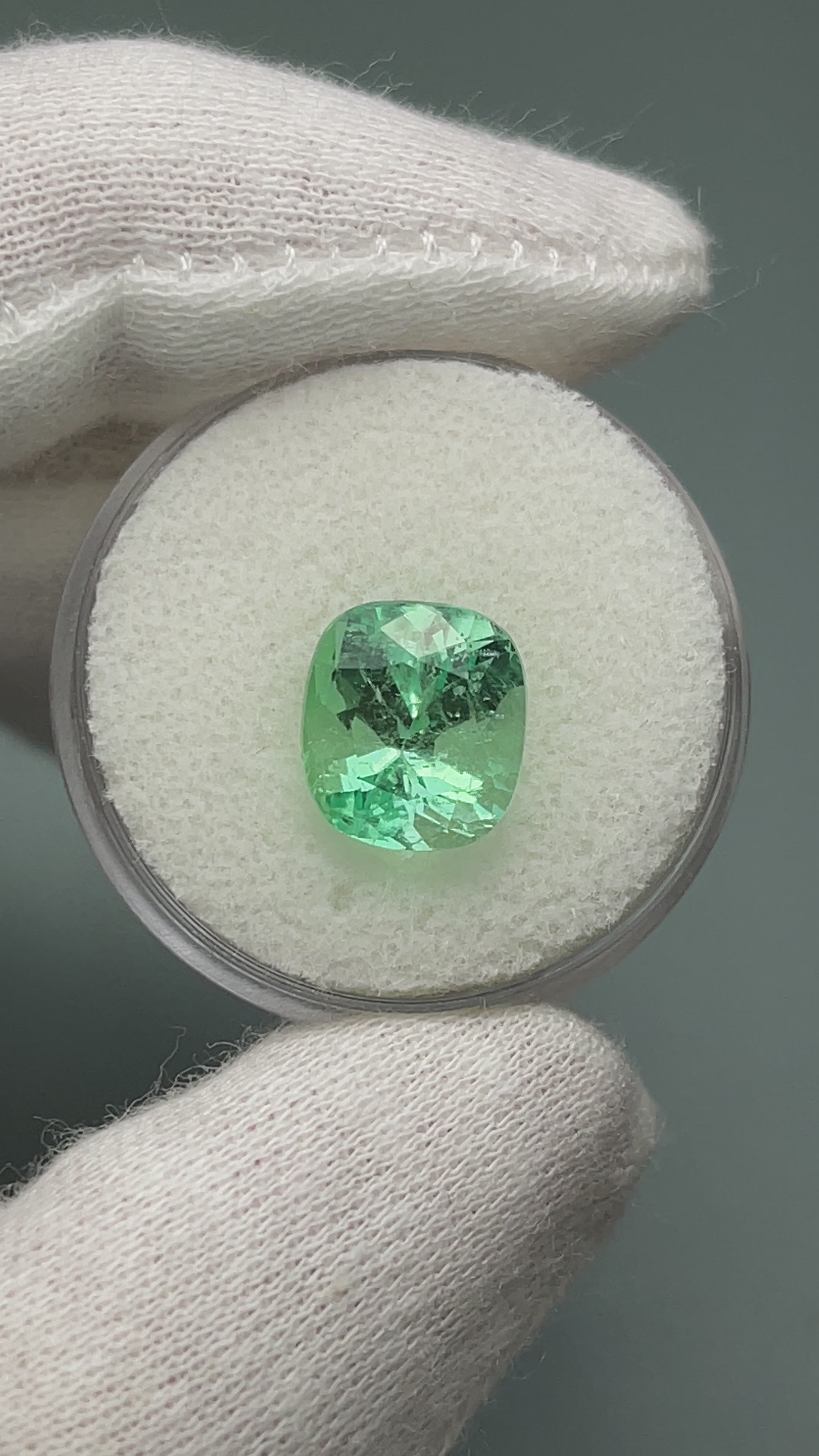 4.13 Carat 10x9 Pastel Yellowish Green Natural Loose Colombian Emerald-Cushion Cut