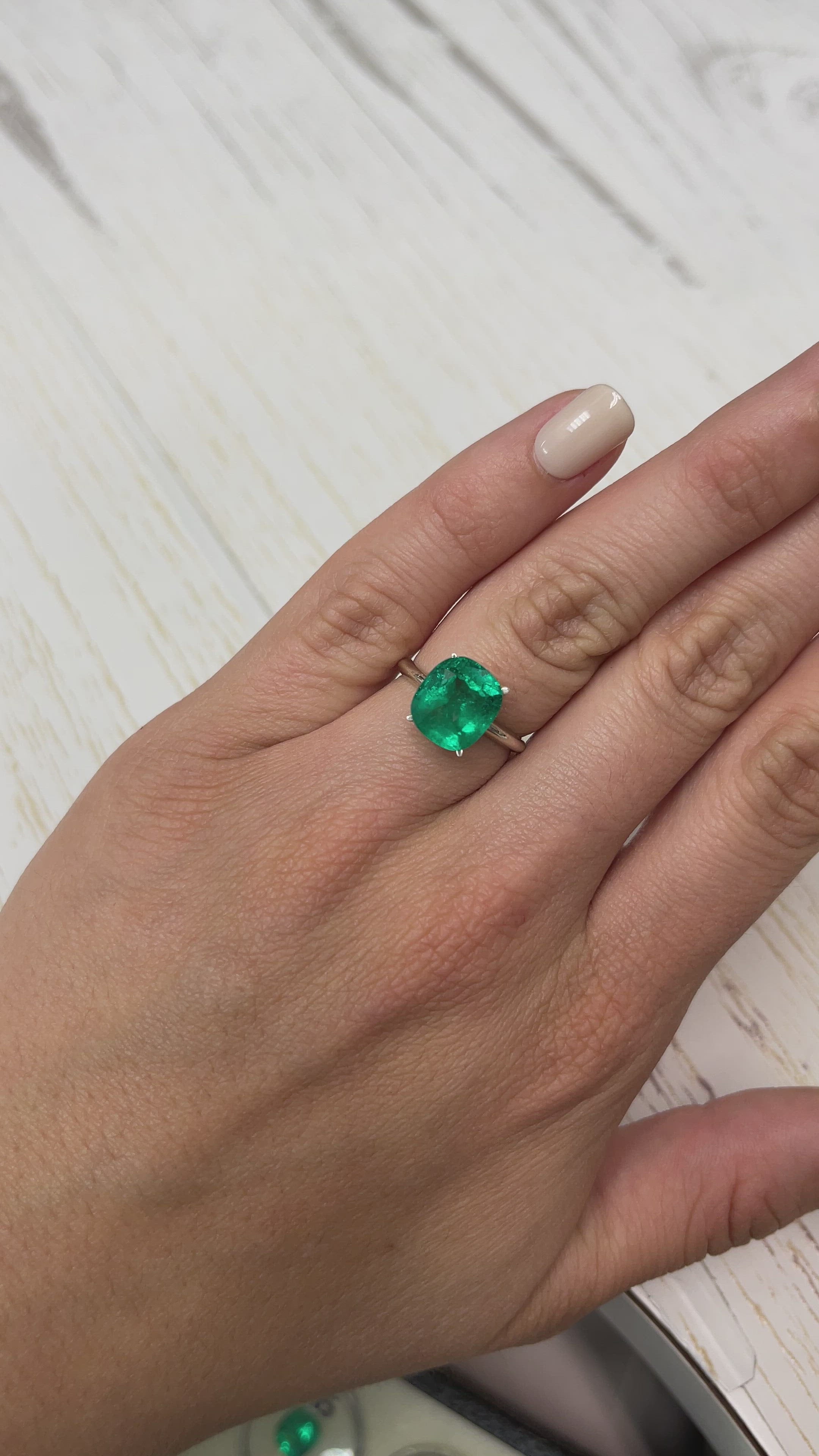 4.19 Carat Minor Oil 11x10 Vivid Muzo Green Natural Loose Colombian Emerald- Cushion Cut