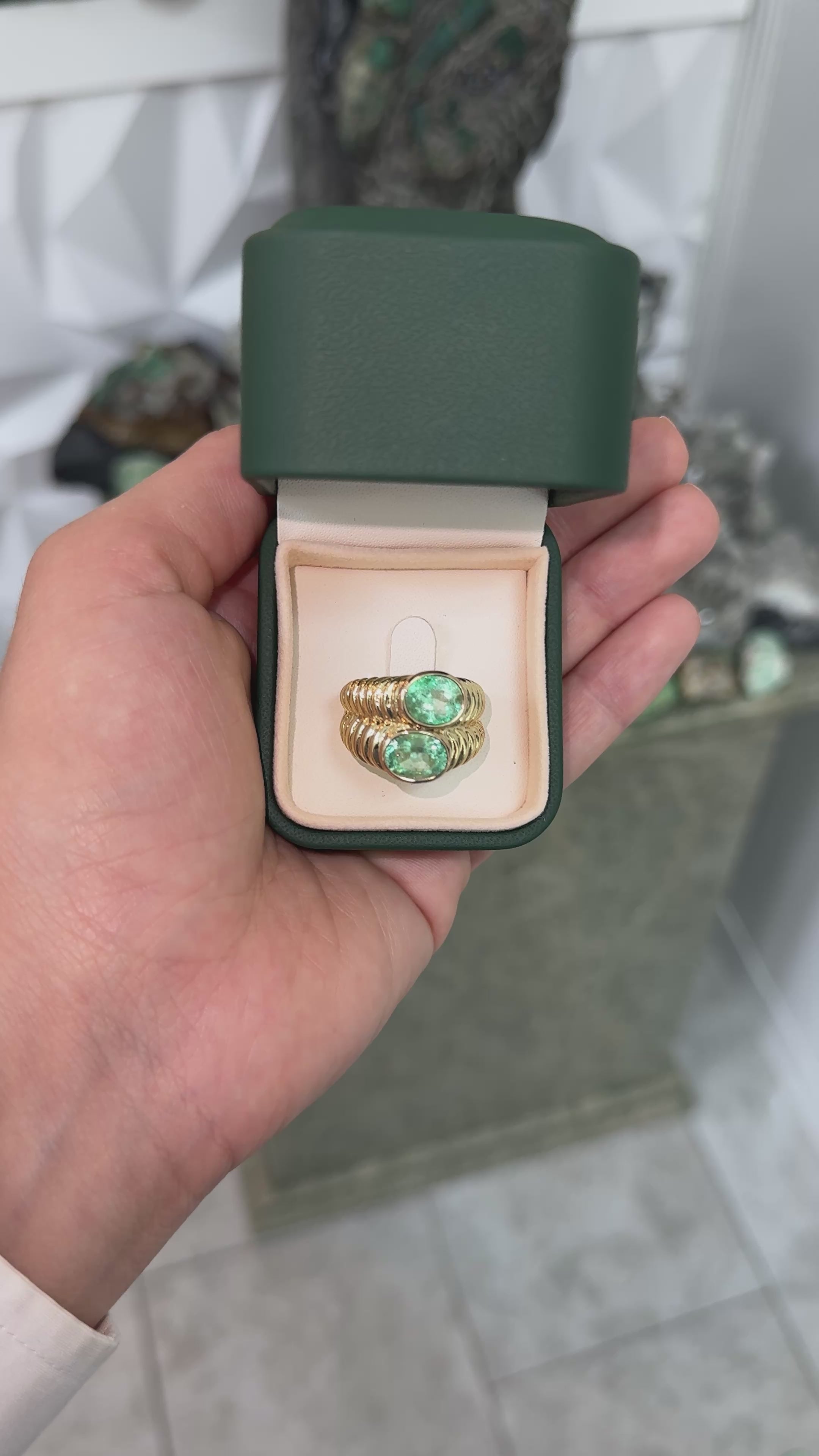 4.25tcw Minty Dualing Toi Et Moi oval Colombian Emeralds Ribbed Ring 14K