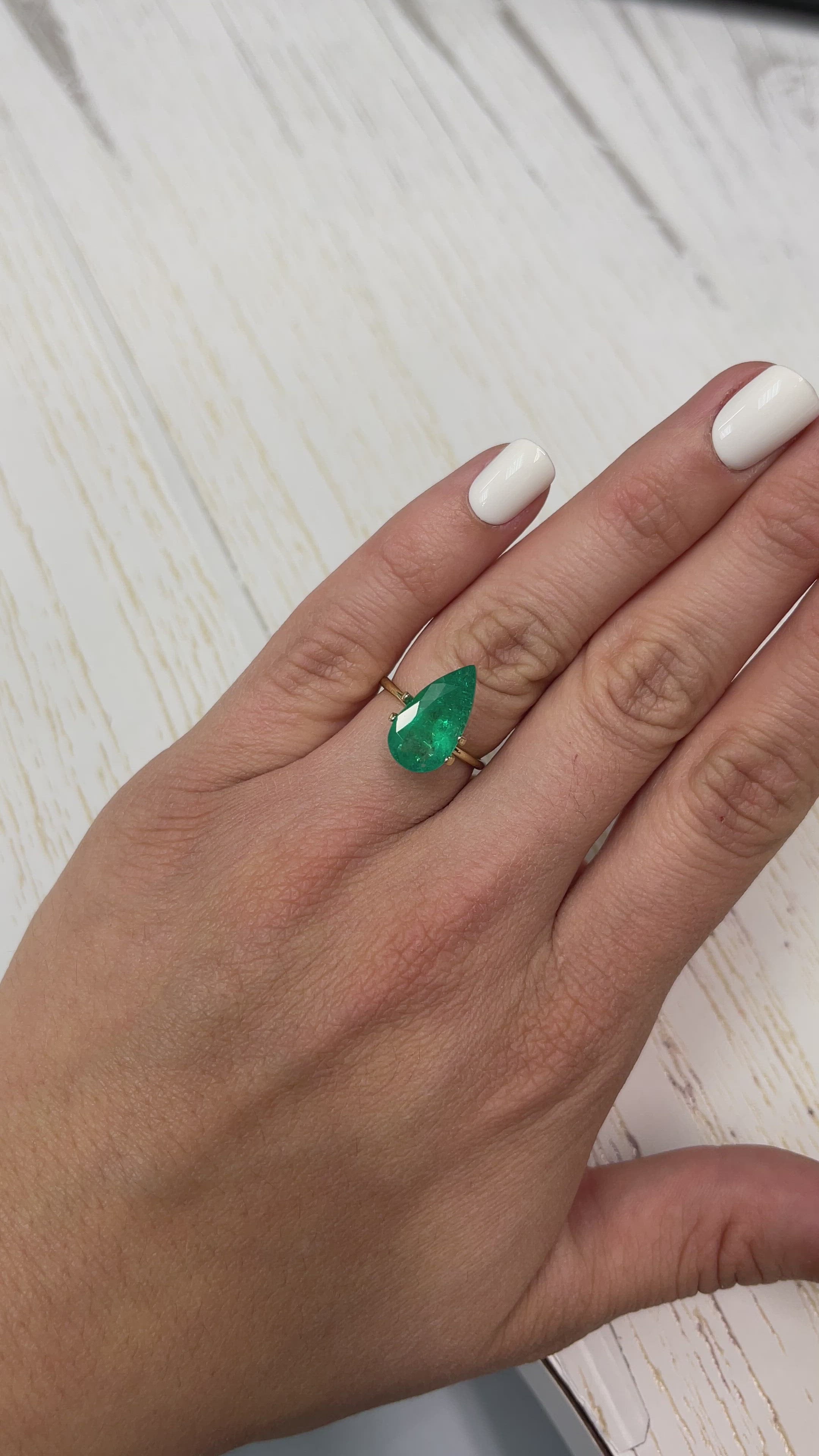 4.34 Carat 16x9 Rich Green Natural Loose Colombian Emerald-Pear Cut