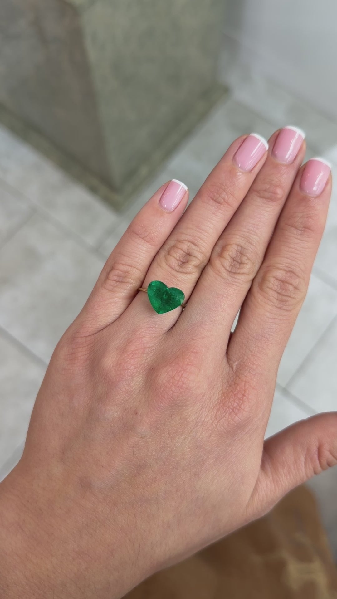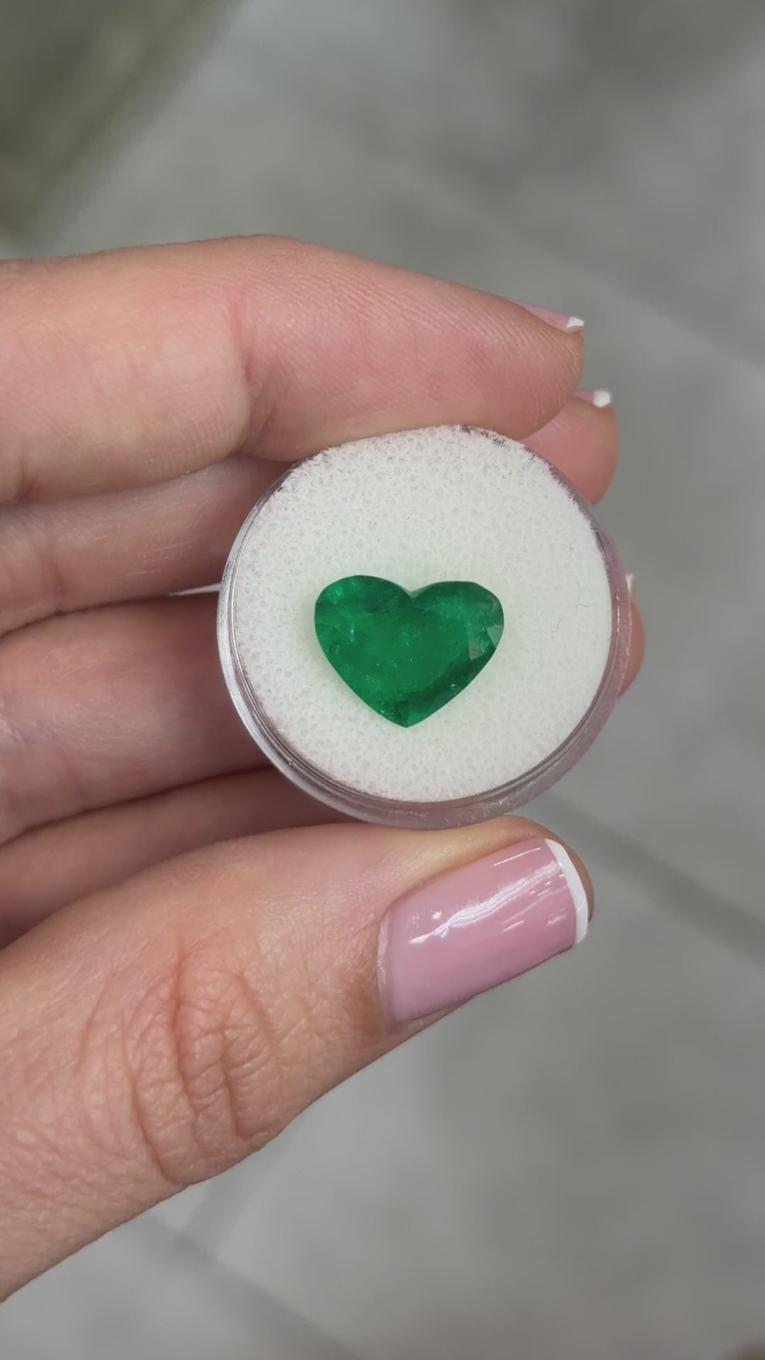 4.46 Carat 11x13 AAA+ Intense Green Natural Loose Colombian Emerald-Heart Cut