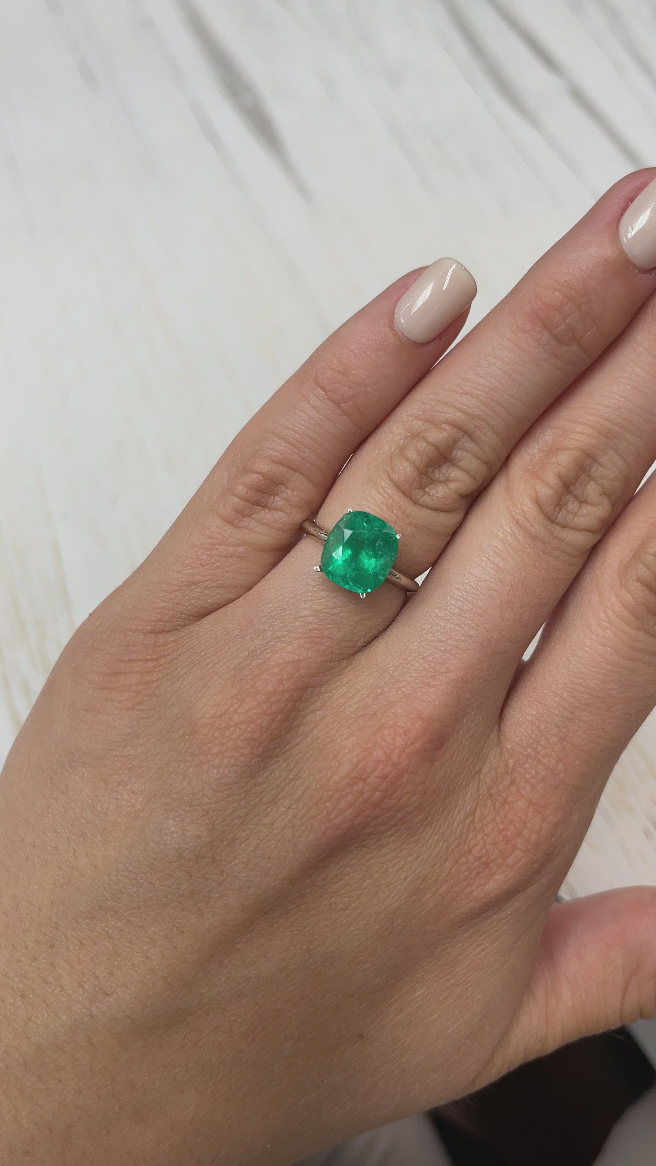 4.46 Carat Rich Green Natural Loose Colombian Emerald-Cushion Cut