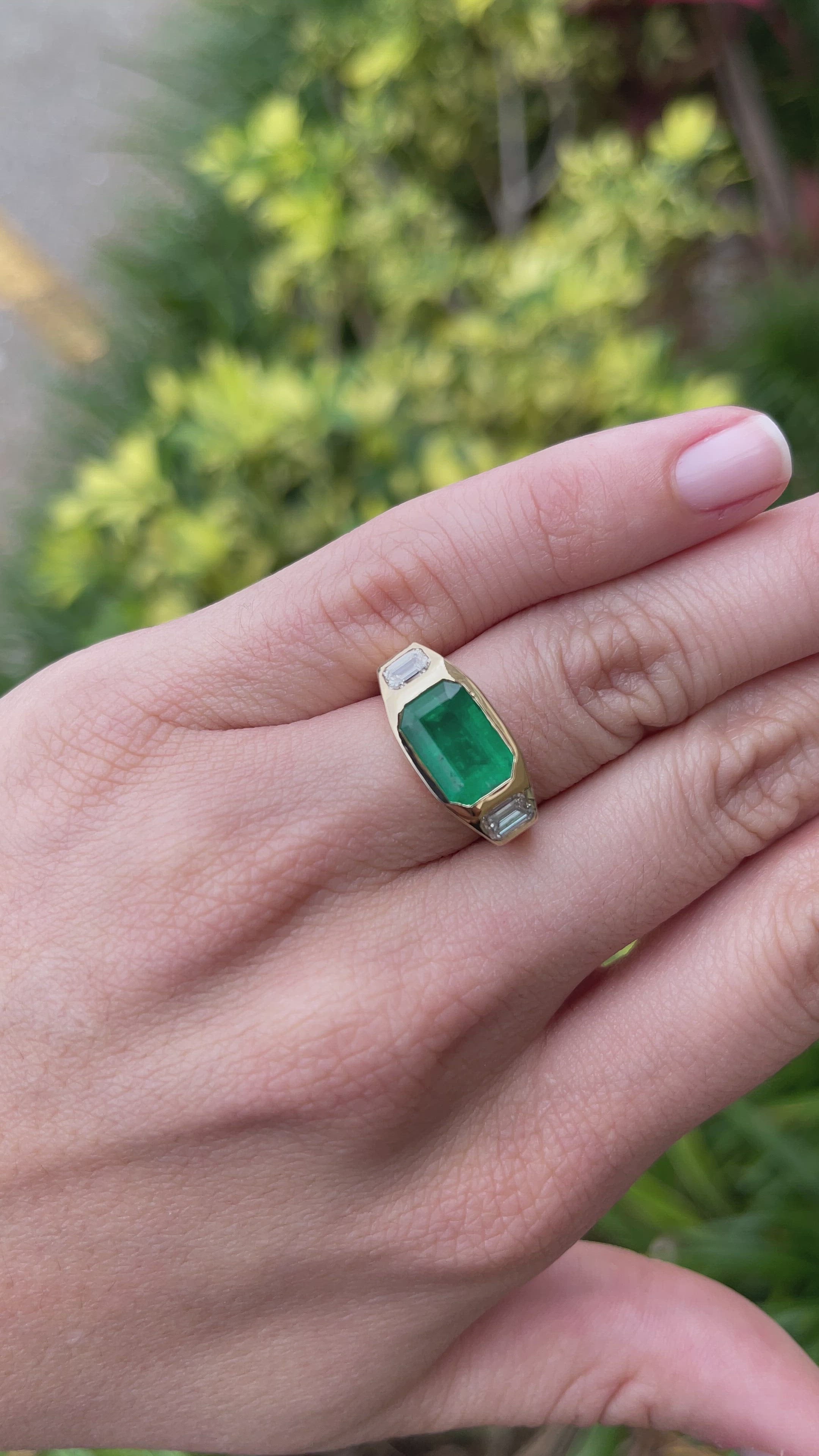 4.50tcw East To West Three Stone Emerald & Emerald Cut Diamond Gypsy Ring 18K