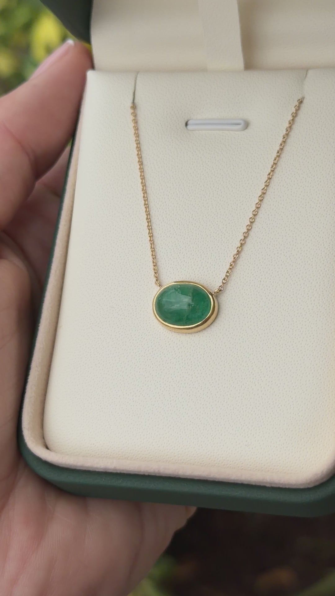 4.54 Carat East to West Emerald Cabochon Bezel Necklace 14K
