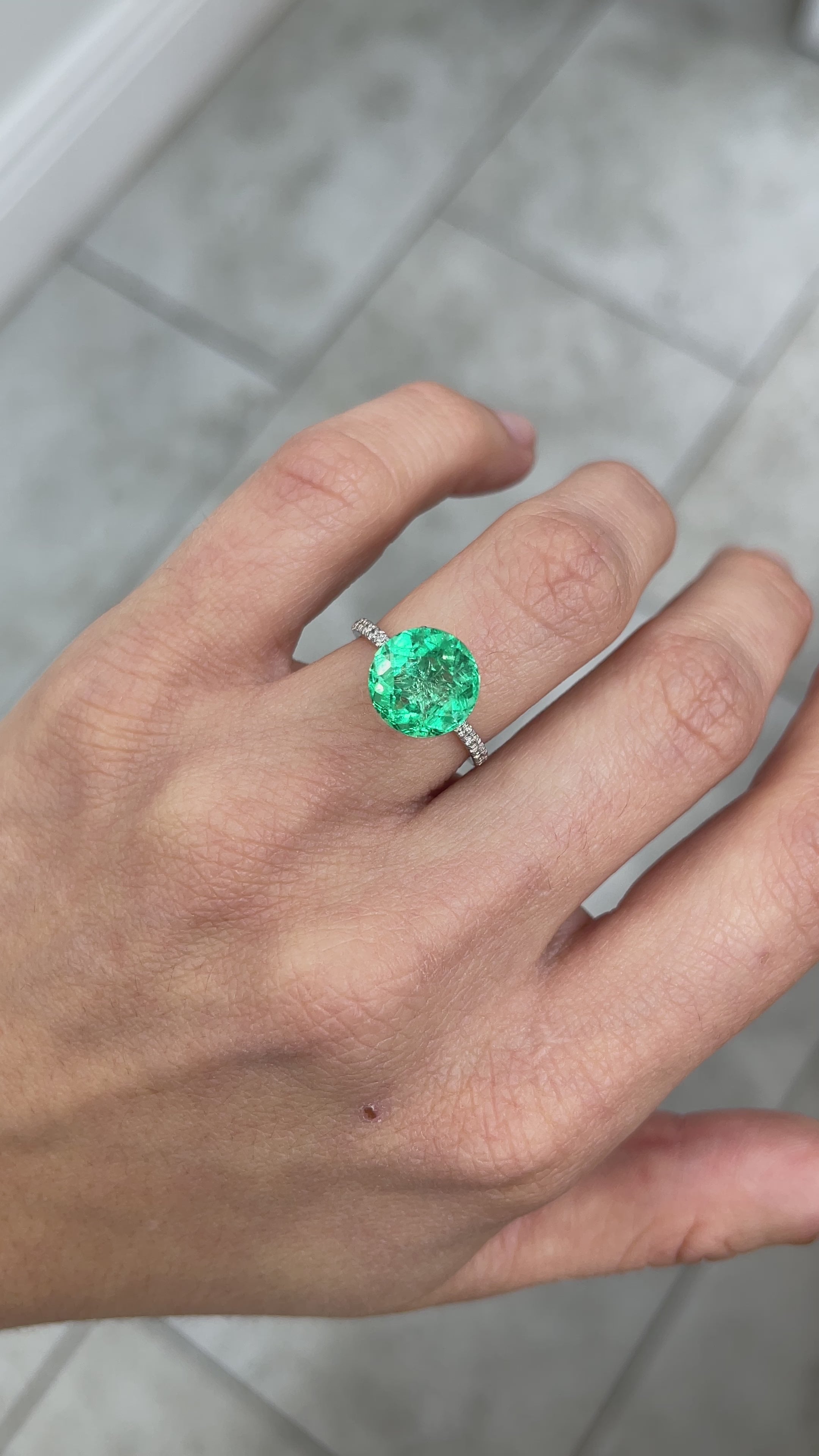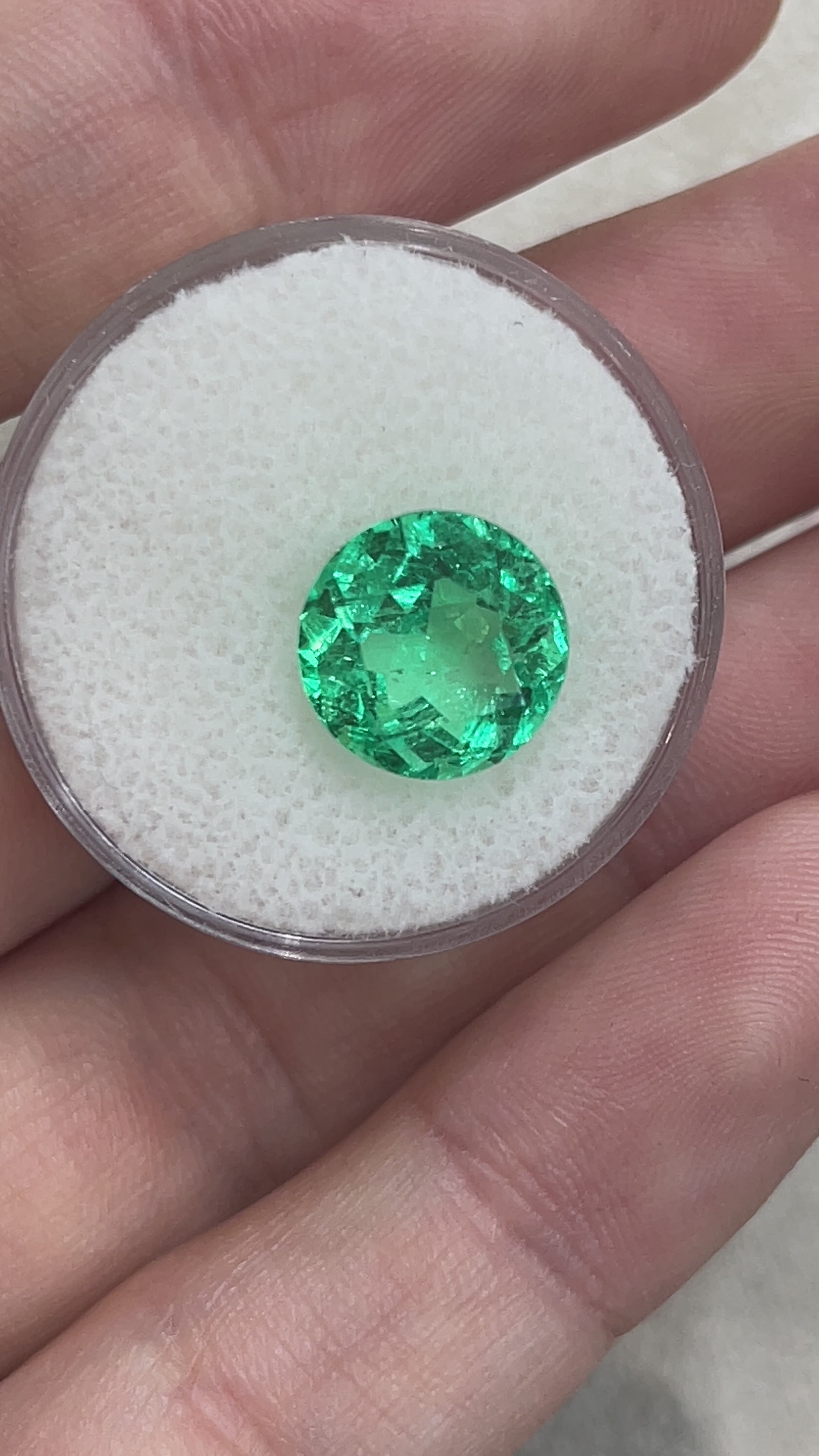 4.57 Carat 10.6x10.6 Crystalline Vibrant Green Natural Round Colombian Emerald