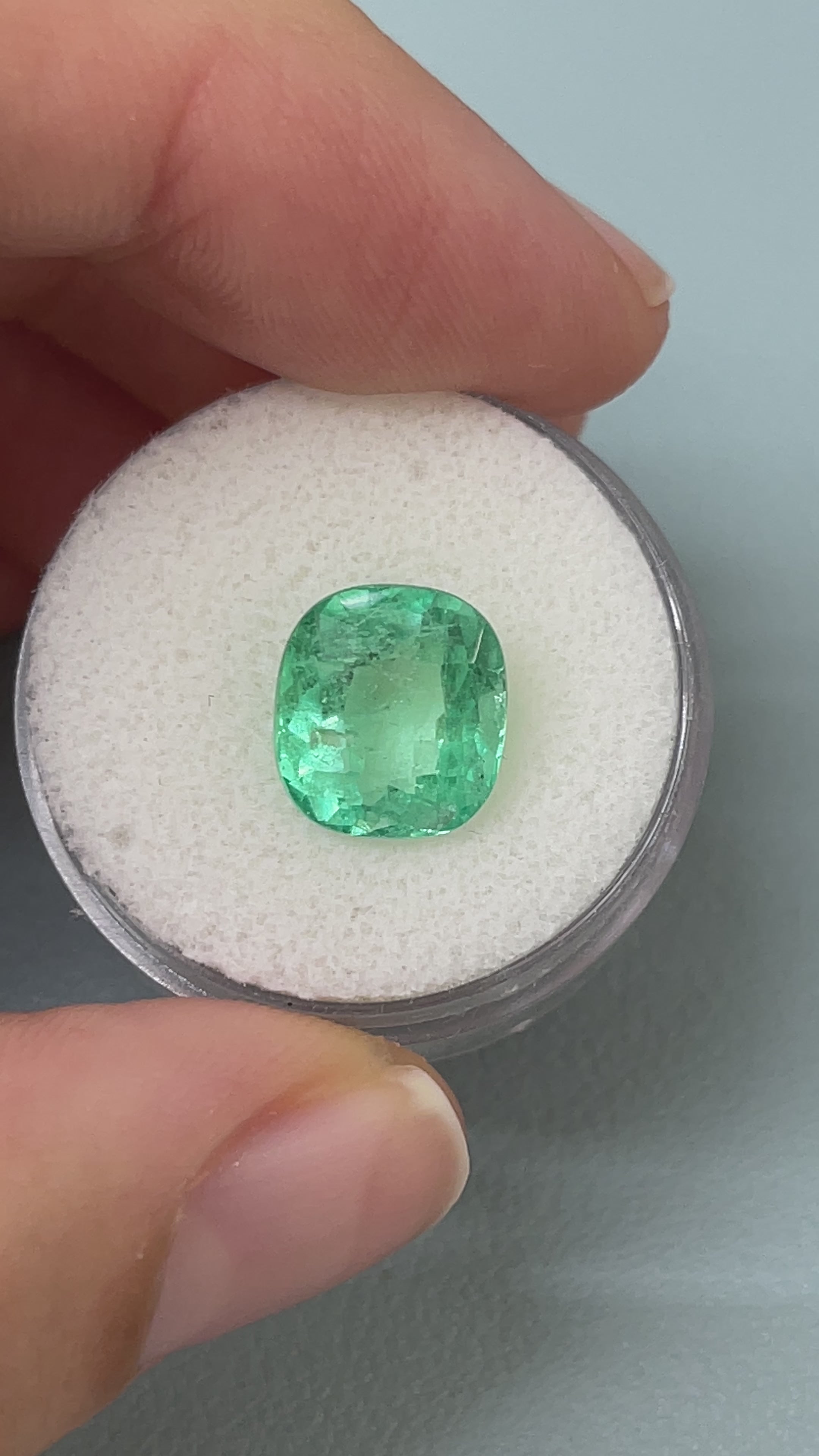 4.71 Carat 10.5x9.6 Gemmy Light Green Natural Loose Colombian Emerald-Cushion Cut