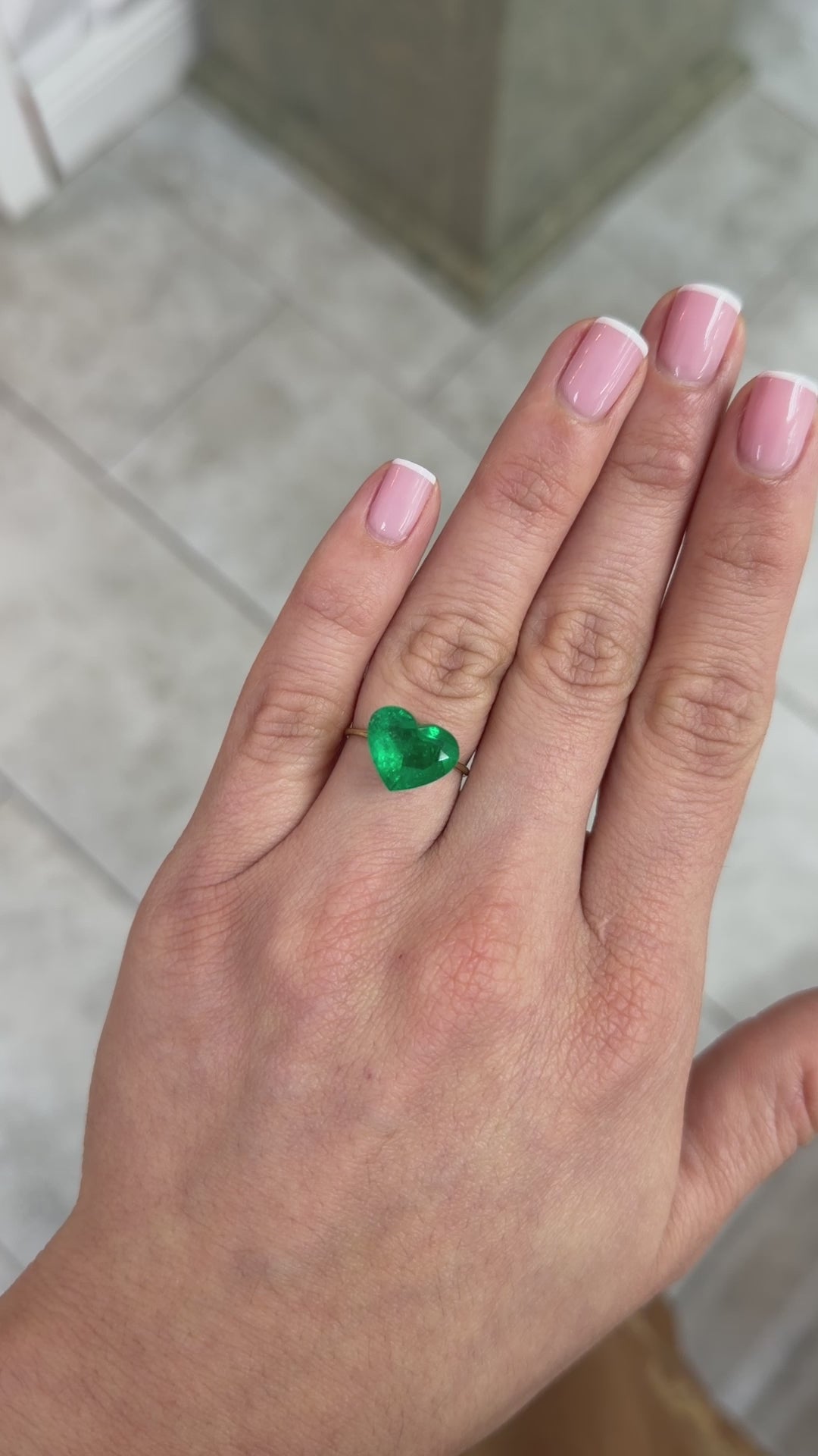 4.79 Carat 11x13 AAA+ Intense Green Natural Loose Colombian Emerald-Heart Cut