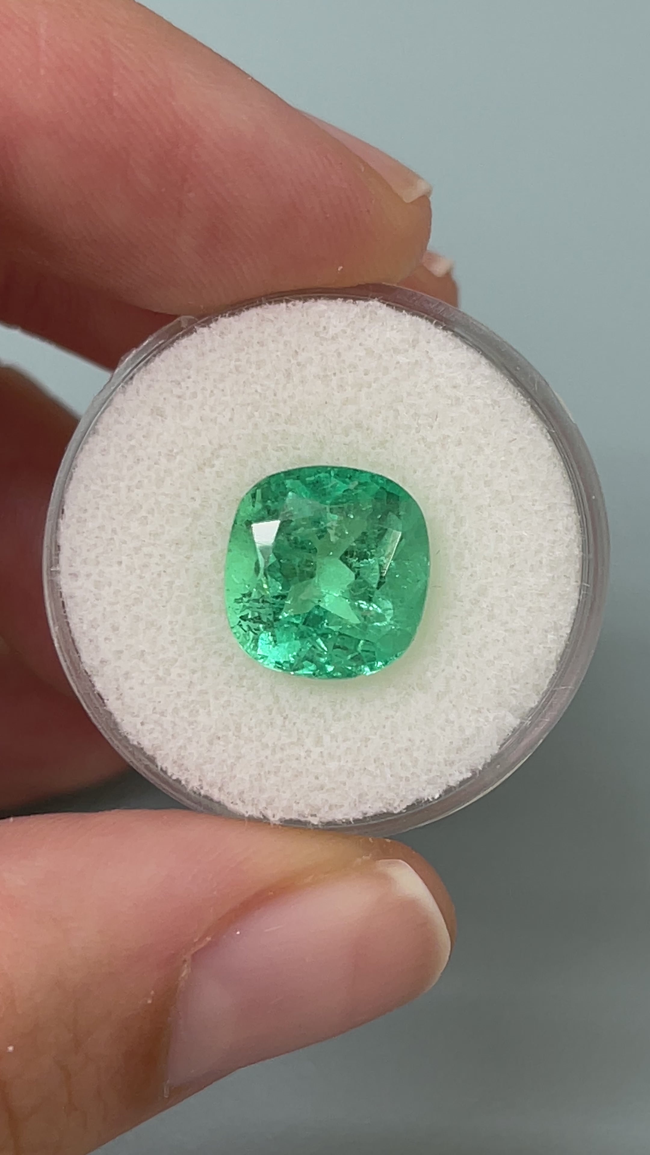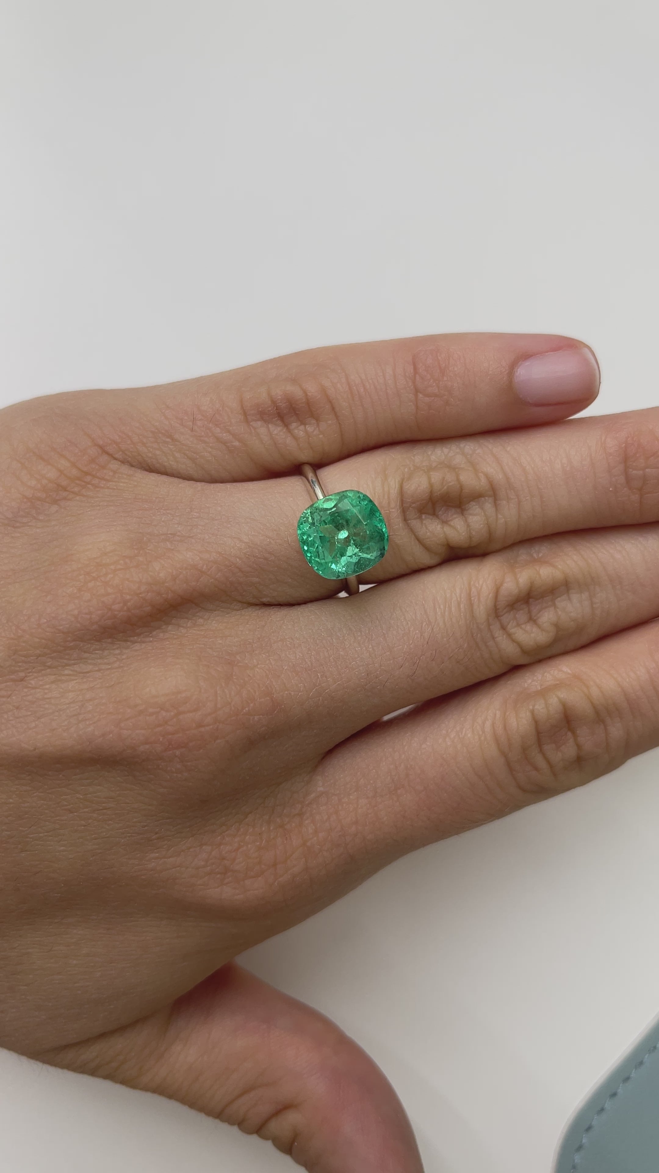 5.20 Carat 11x10.5 Bright Bluish Green Natural Loose Colombian Emerald-Cushion Cut