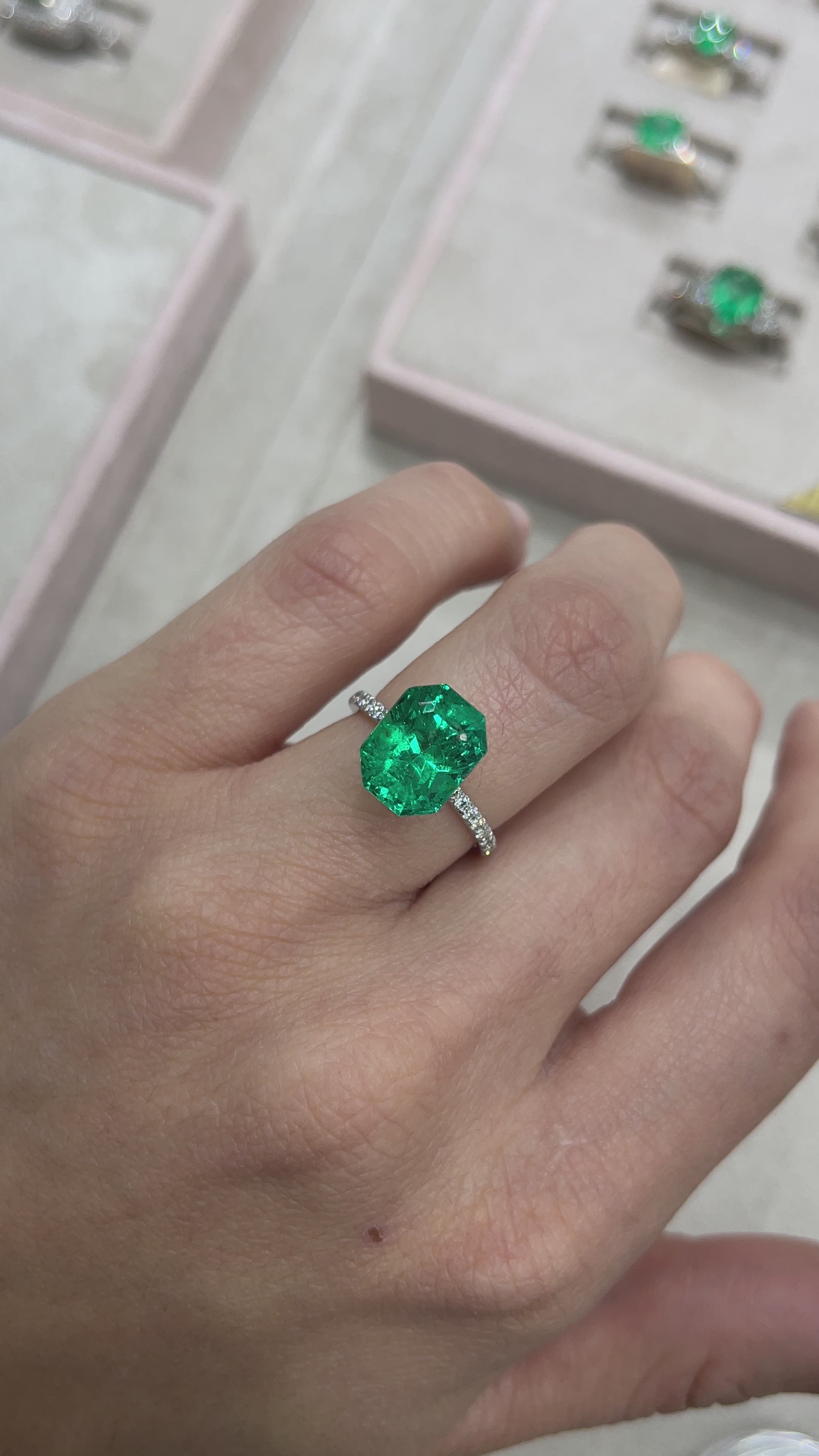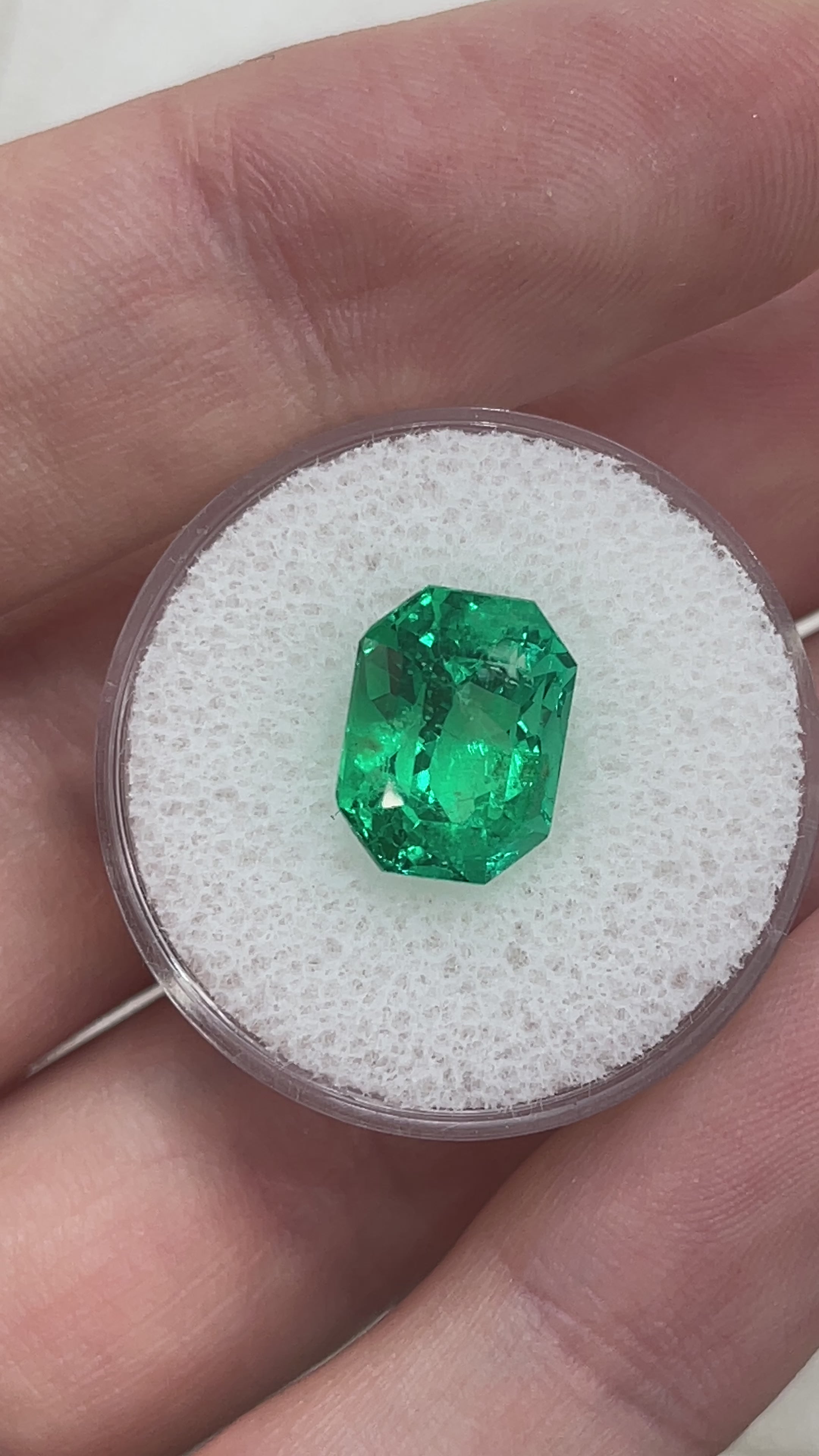 5.21 Carat 11.5x9 Vivid Bluish Green Emerald Cut Colombian Emerald with Clipped Corners