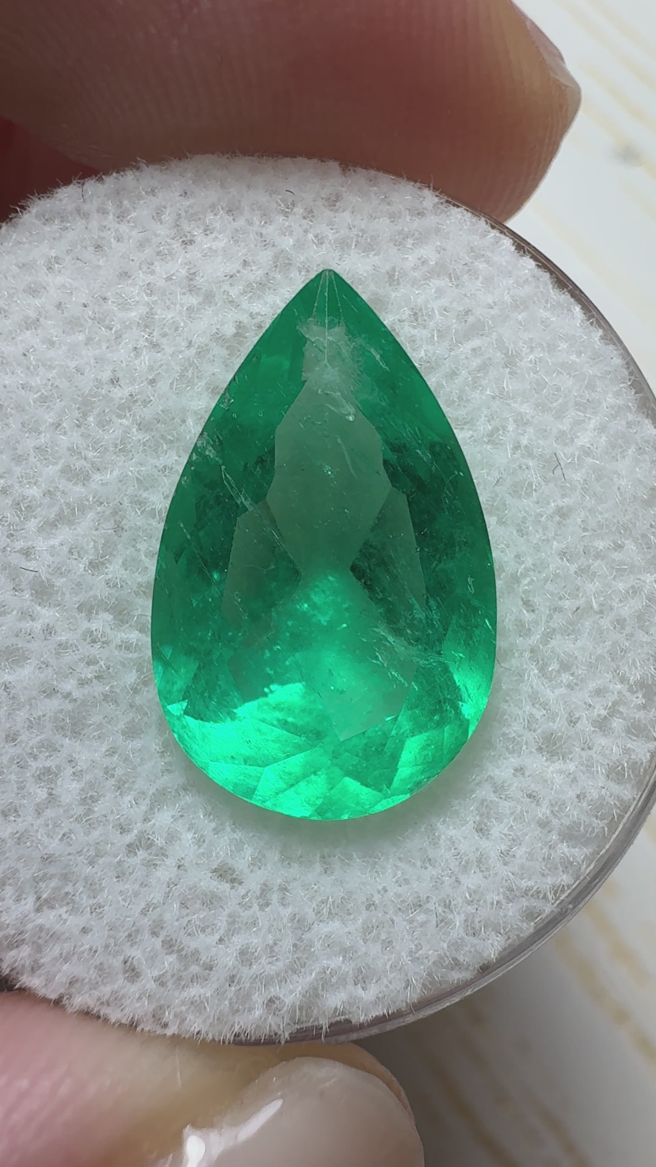 5.27 carat 16x10 Medium Green Natural Loose Colombian Emerald-Pear Cut