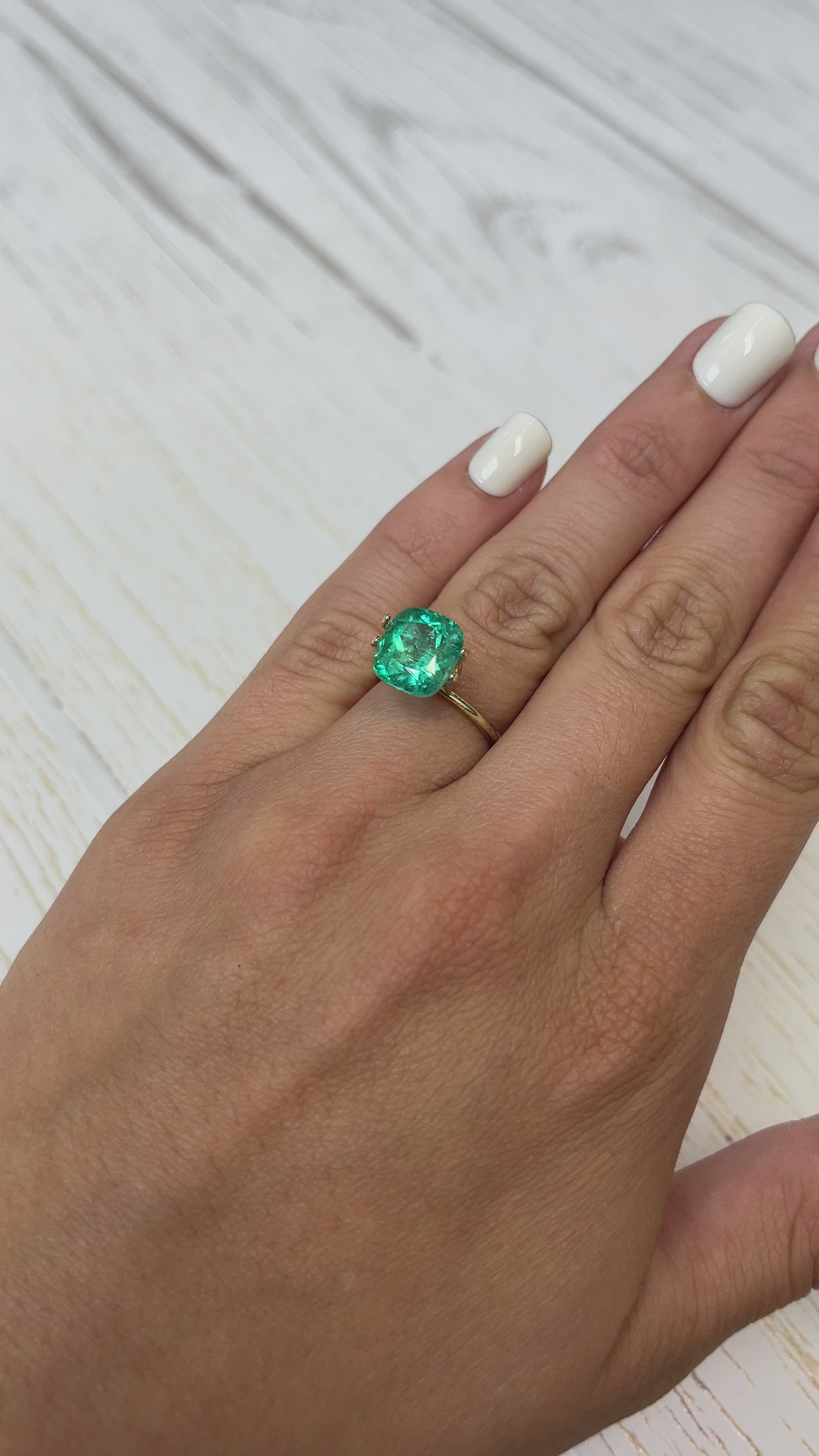 5.29 Carat Certified 10.5 x 9.7 Bluish Natural Loose Colombian Emerald-Cushion Cut