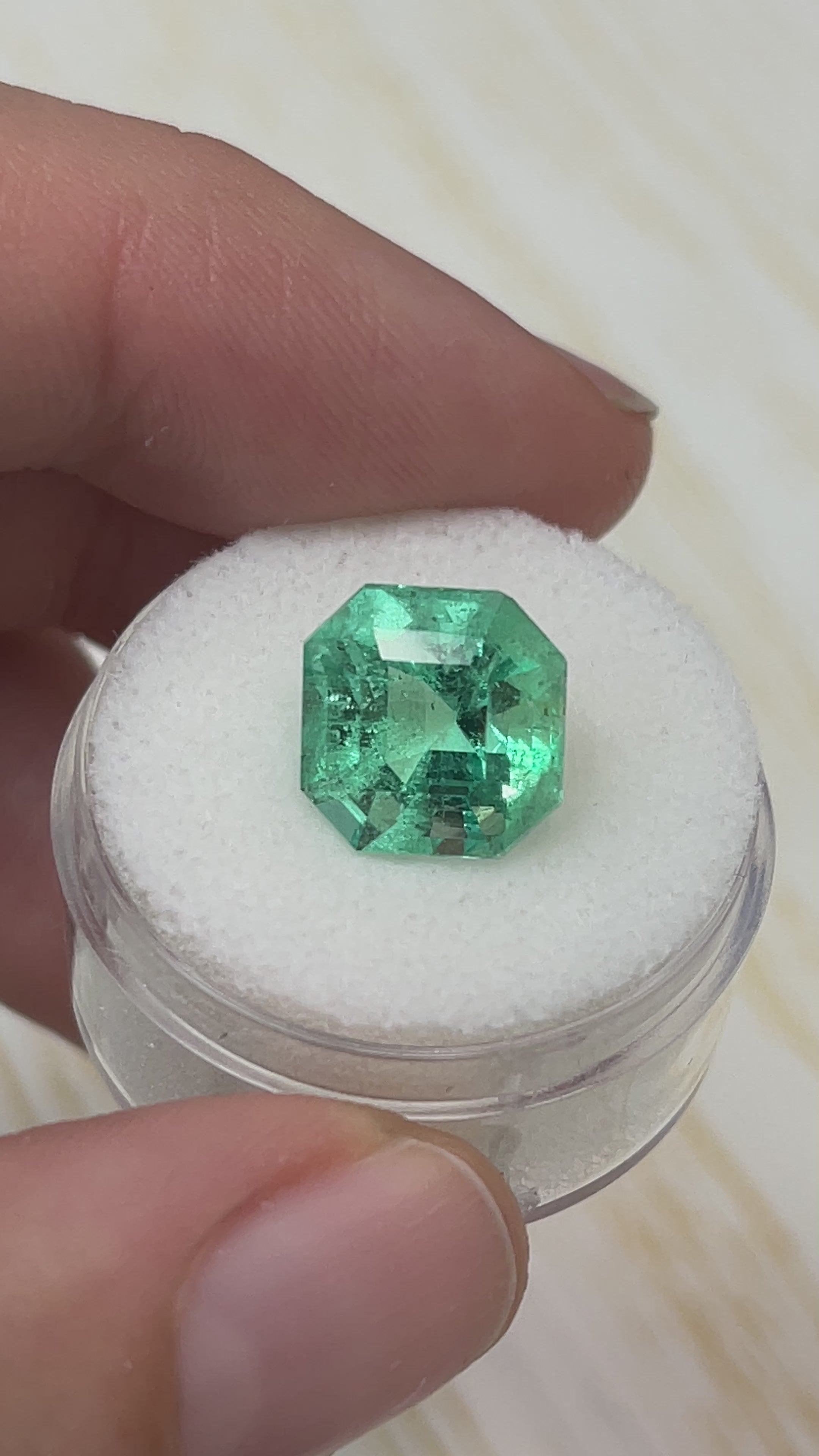 5.56 Carat 10.6x10.6 Spring Green Natural Loose Colombian Emerald-Asscher Cut