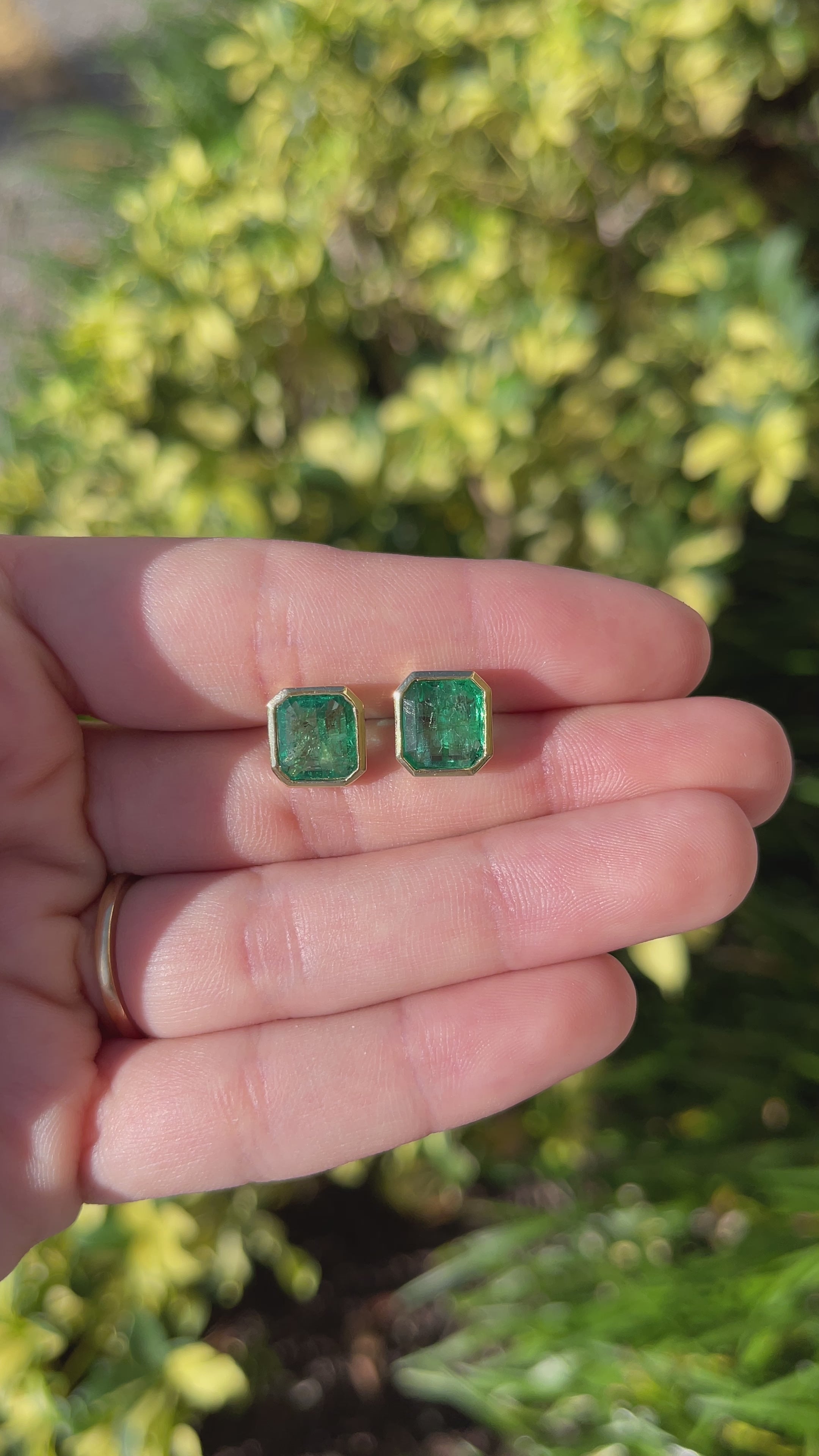 5.60tcw Classic Asscher Cut Emerald Bezel Stud Earrings 18K