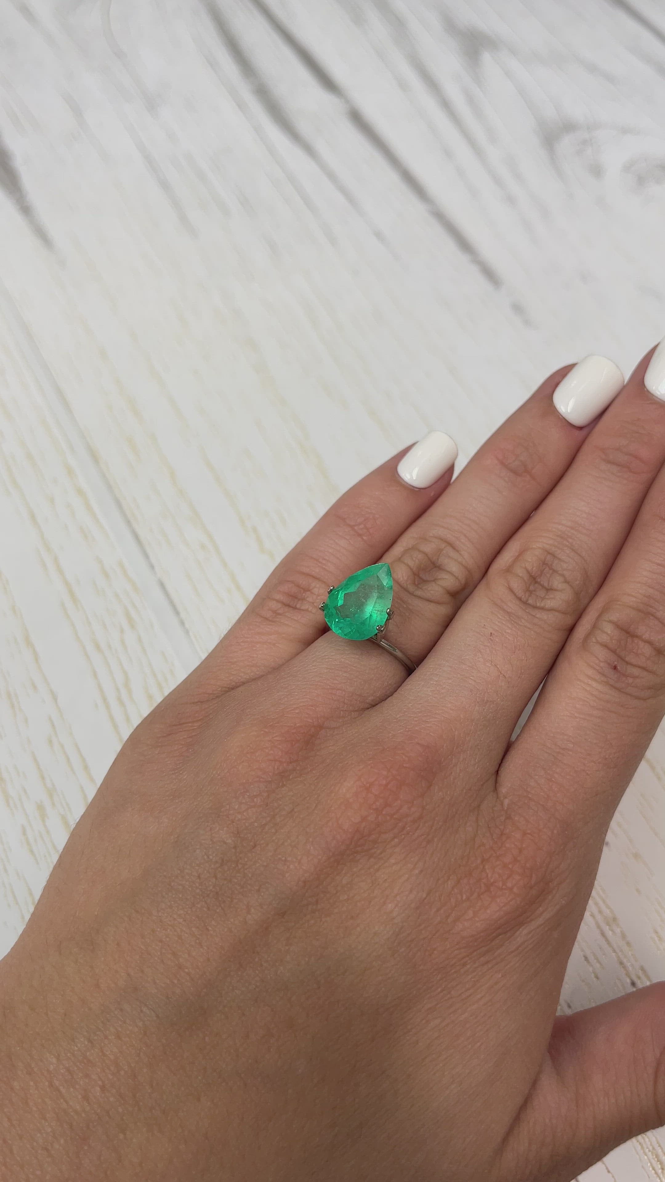 5.73 Carat Apple Green Natural Loose Colombian Emerald-Pear Cut