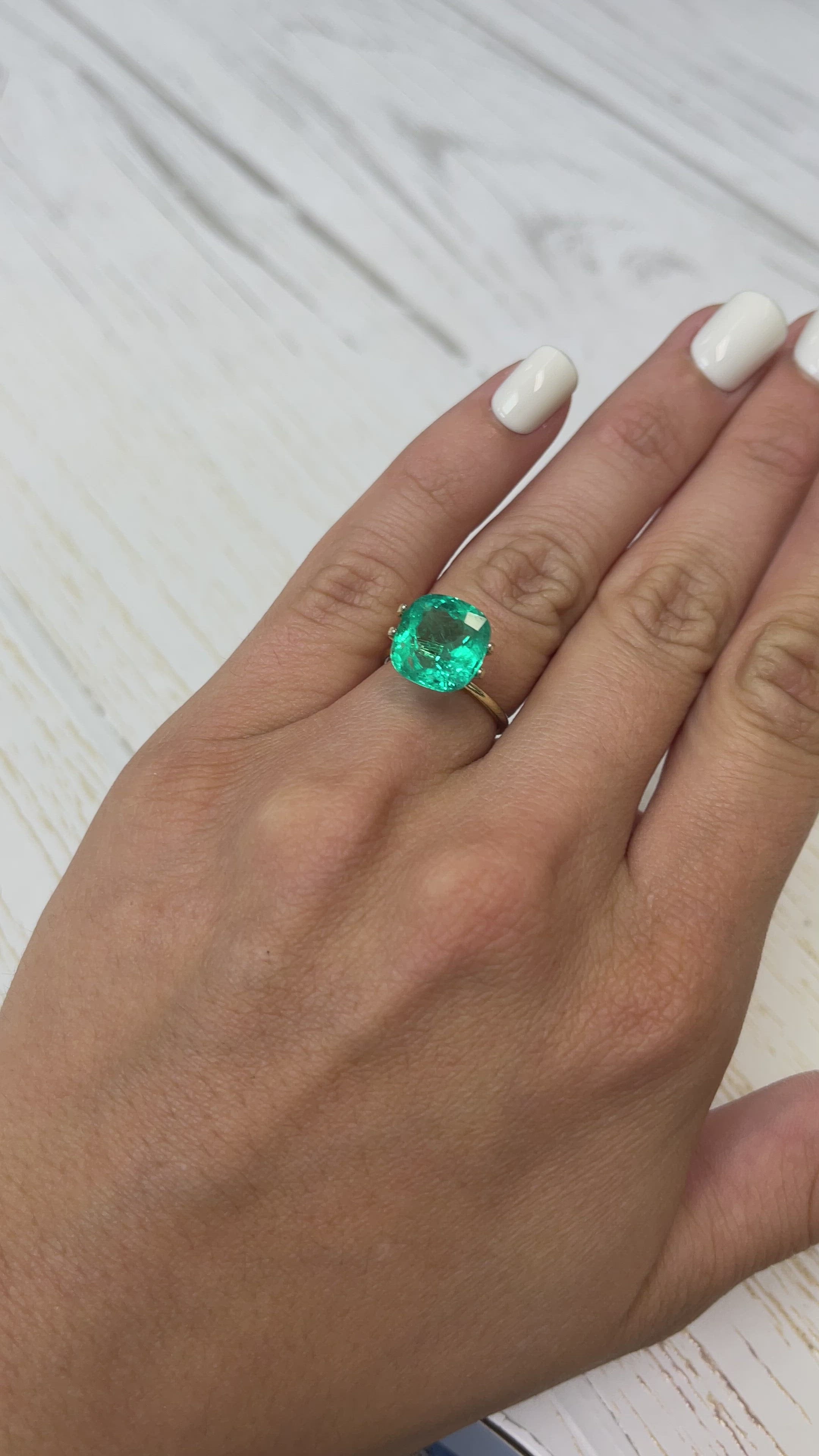 5.80 Carat Certified 11.5x10.8 Fine Bluish Green Natural Loose Colombian Emerald- Cushion Cut