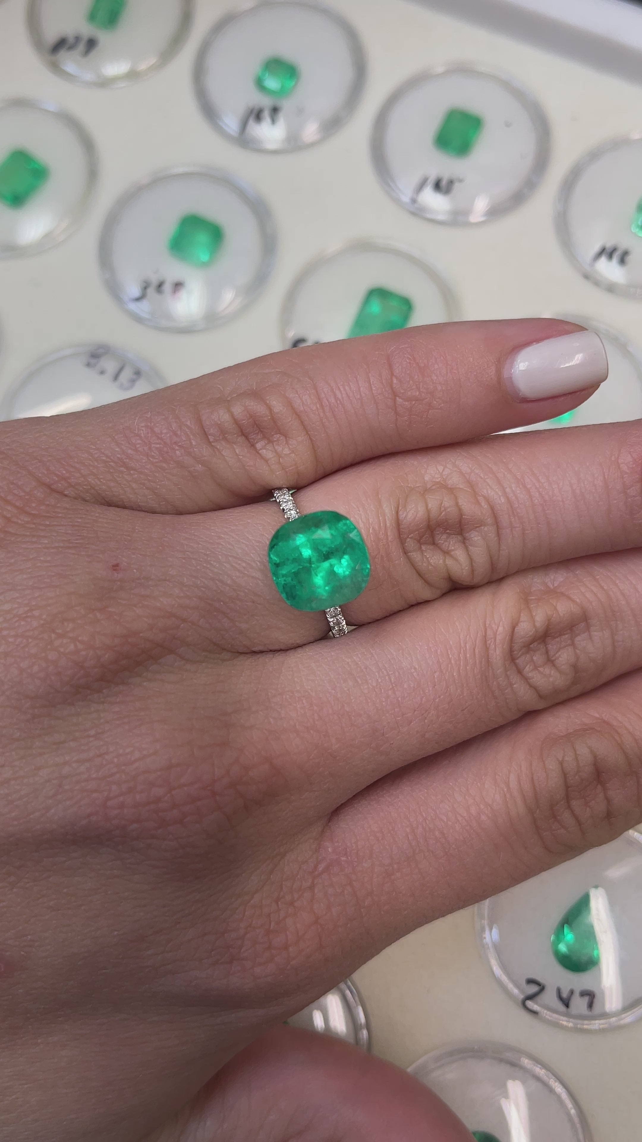 5.83 Carat 11x11 Classic Green Natural Loose Colombian Emerald-Cushion Cut