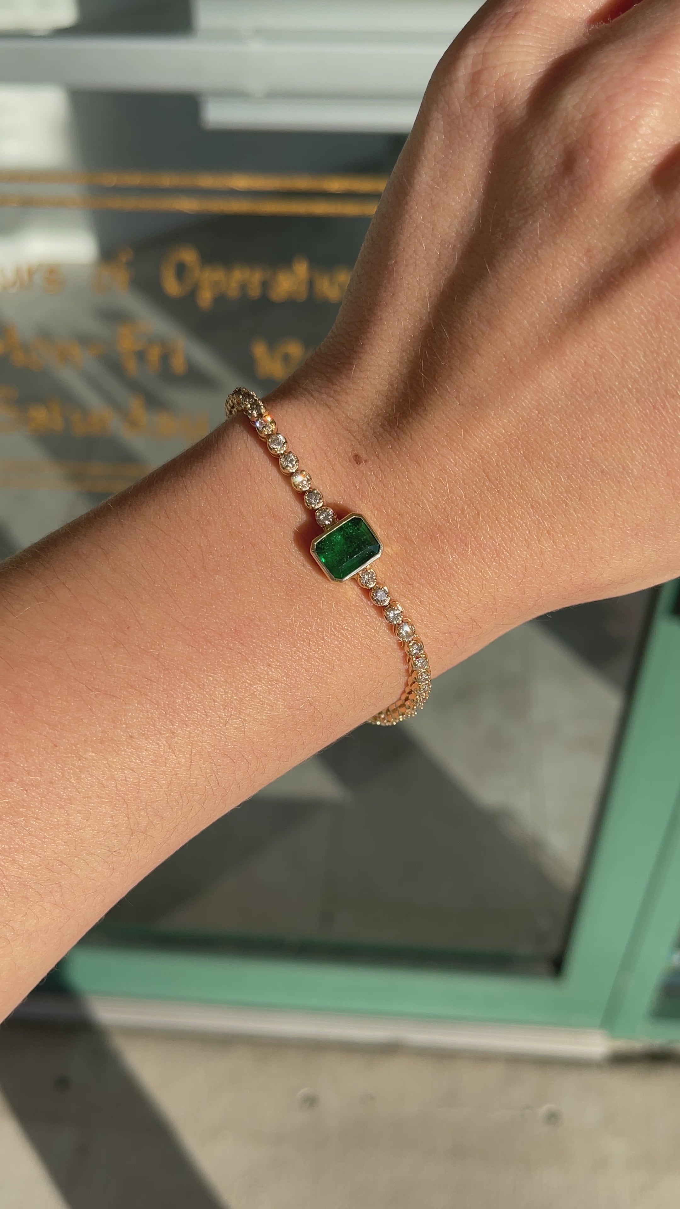5.86tcw Vivid Green Bezel Emerald & Diamond Tennis Bracelet 14K