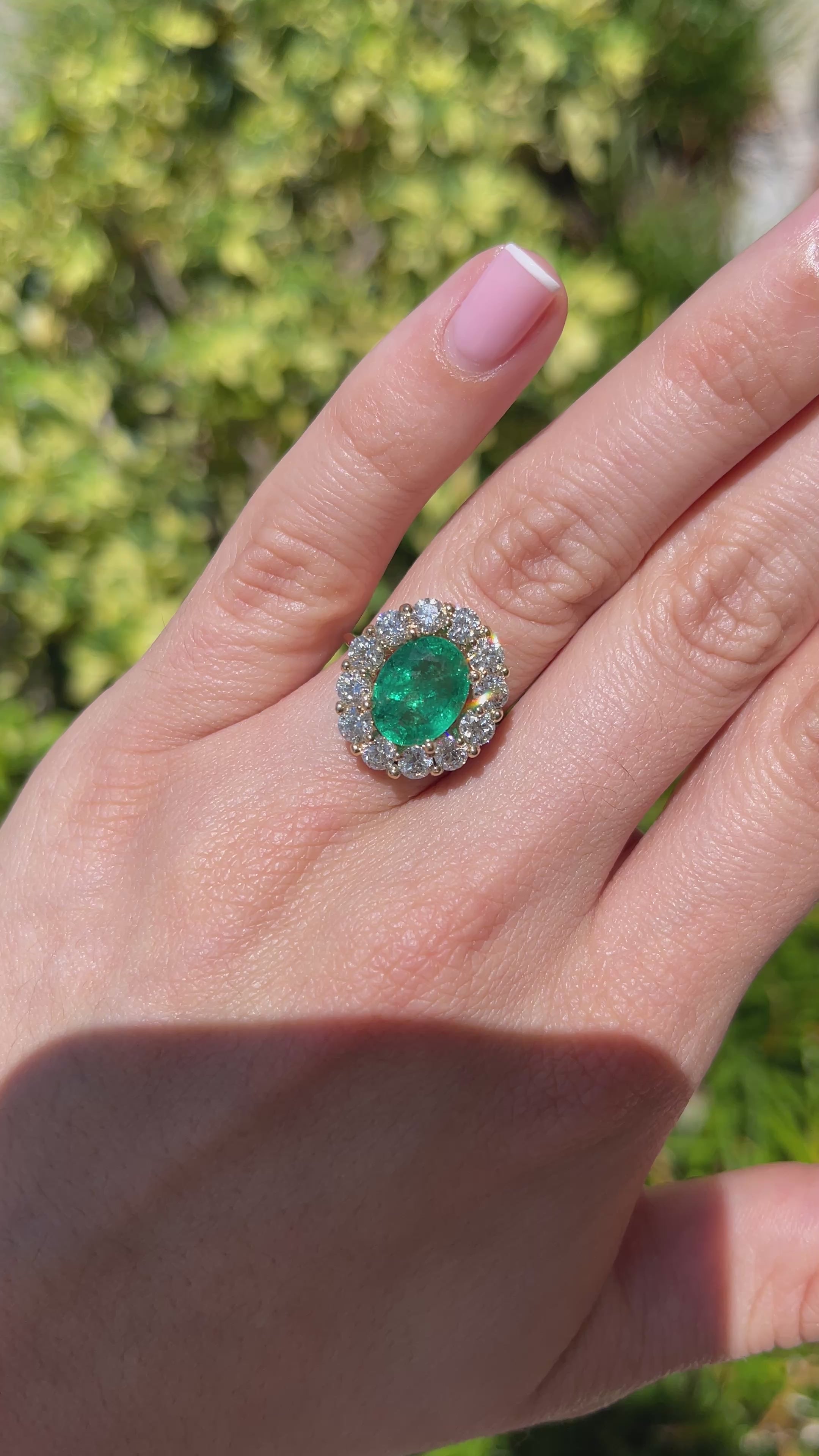5.90tcw 14K Natural Oval Cut Emerald & LAB Jumbo Diamond Halo Right Hand Ring