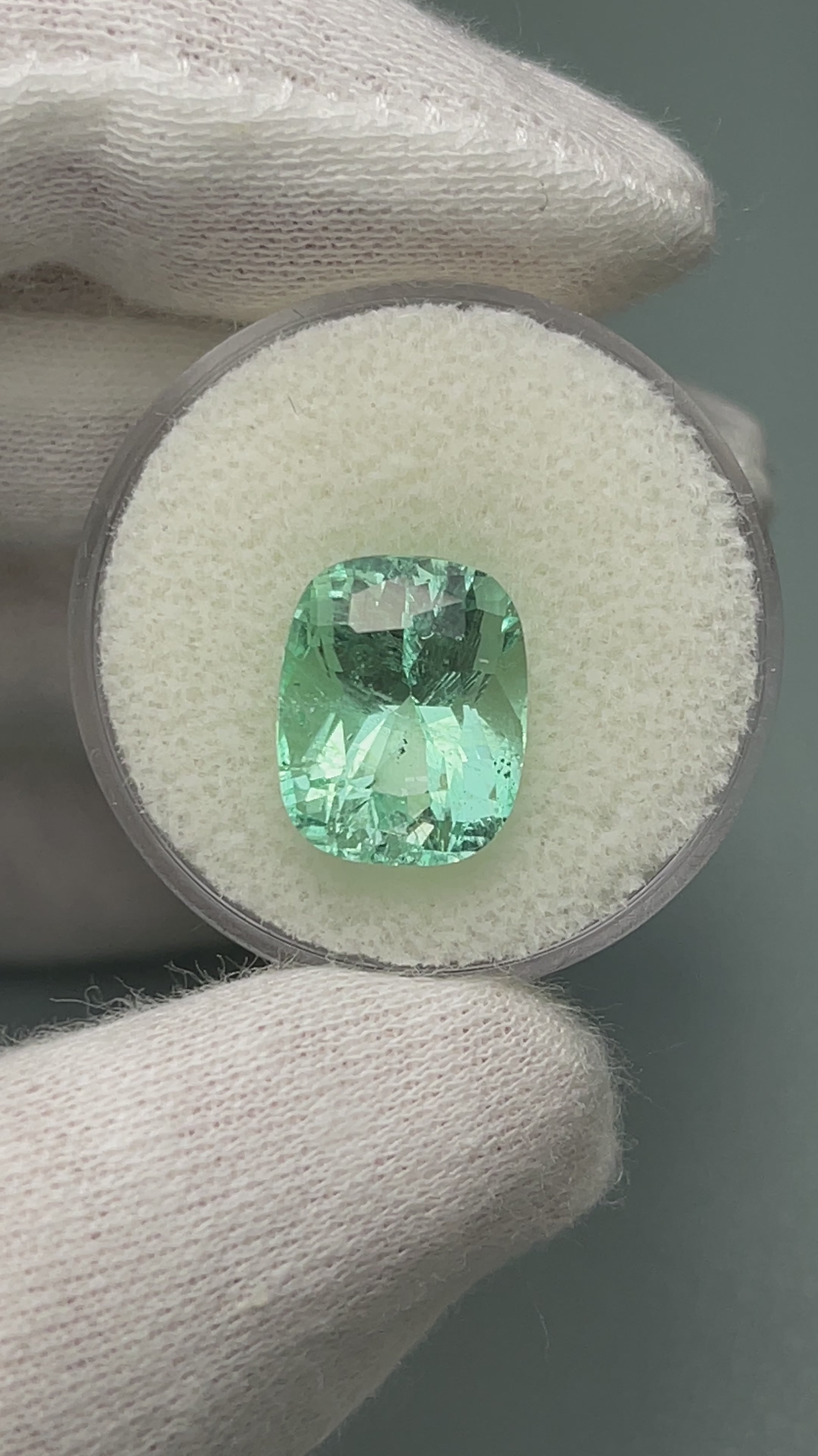5.96 Carat 13x10 Seafoam Green Freckled Natural Loose Colombian Emerald-Elongated Cushion Cut