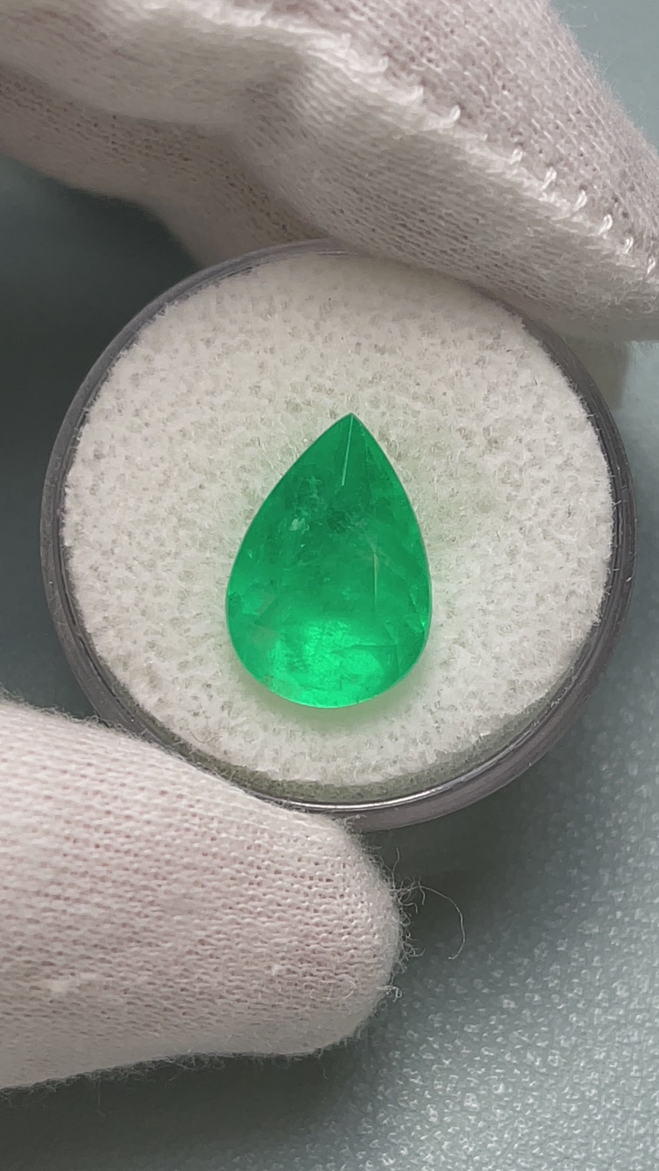 6.01 carat 14x10 Medium Yellowish Green Natural Loose Colombian Emerald-Pear Cut