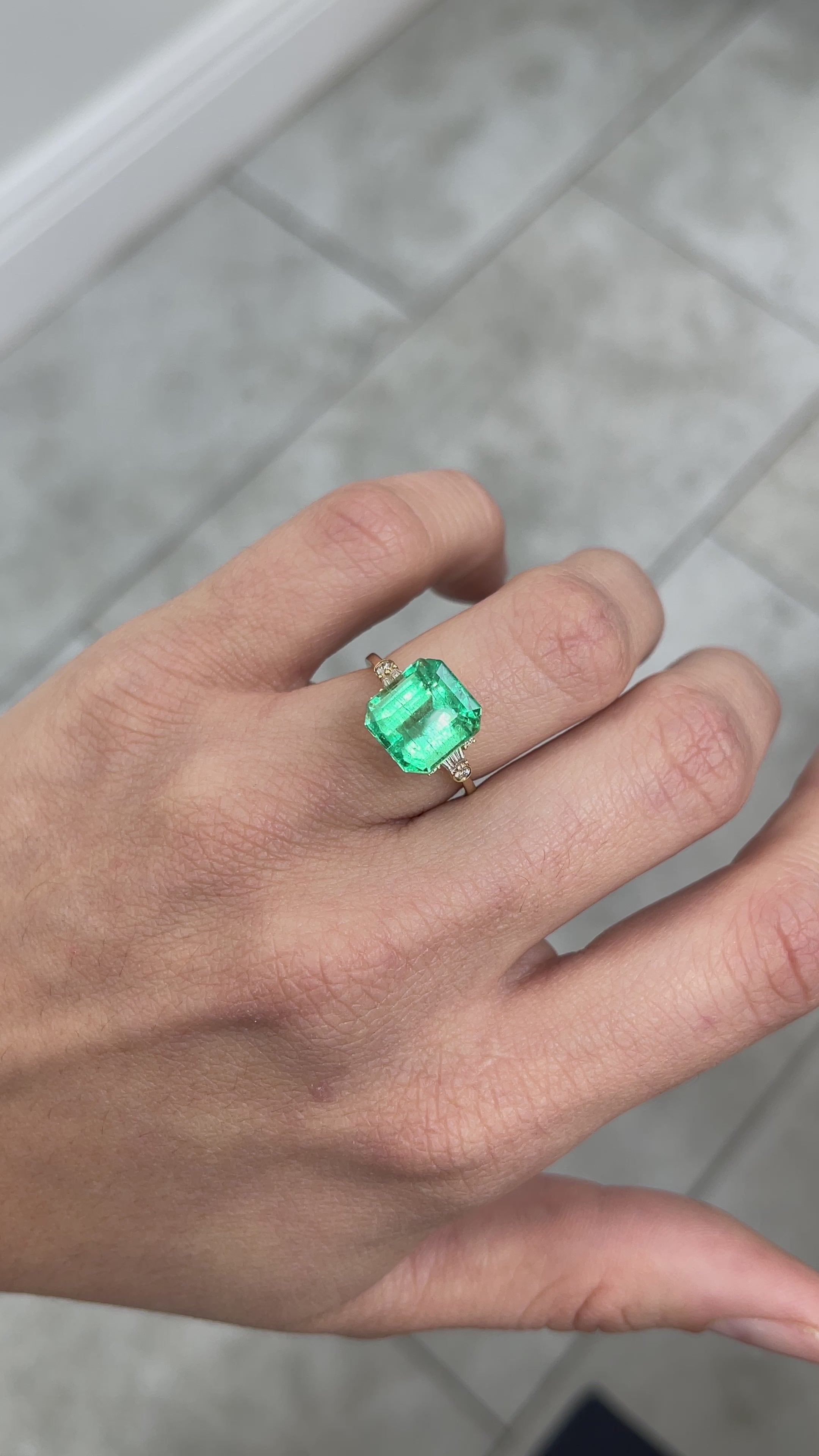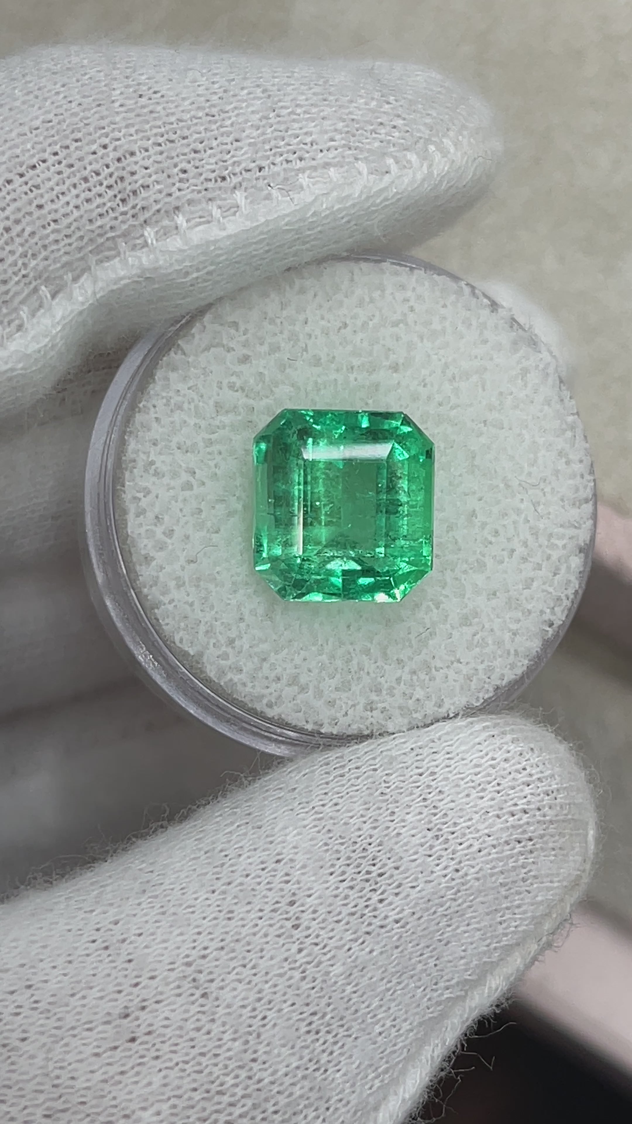 6.07 Carat 10.7x10 Yellowish Green Natural Loose Colombian Emerald-Asscher Cut